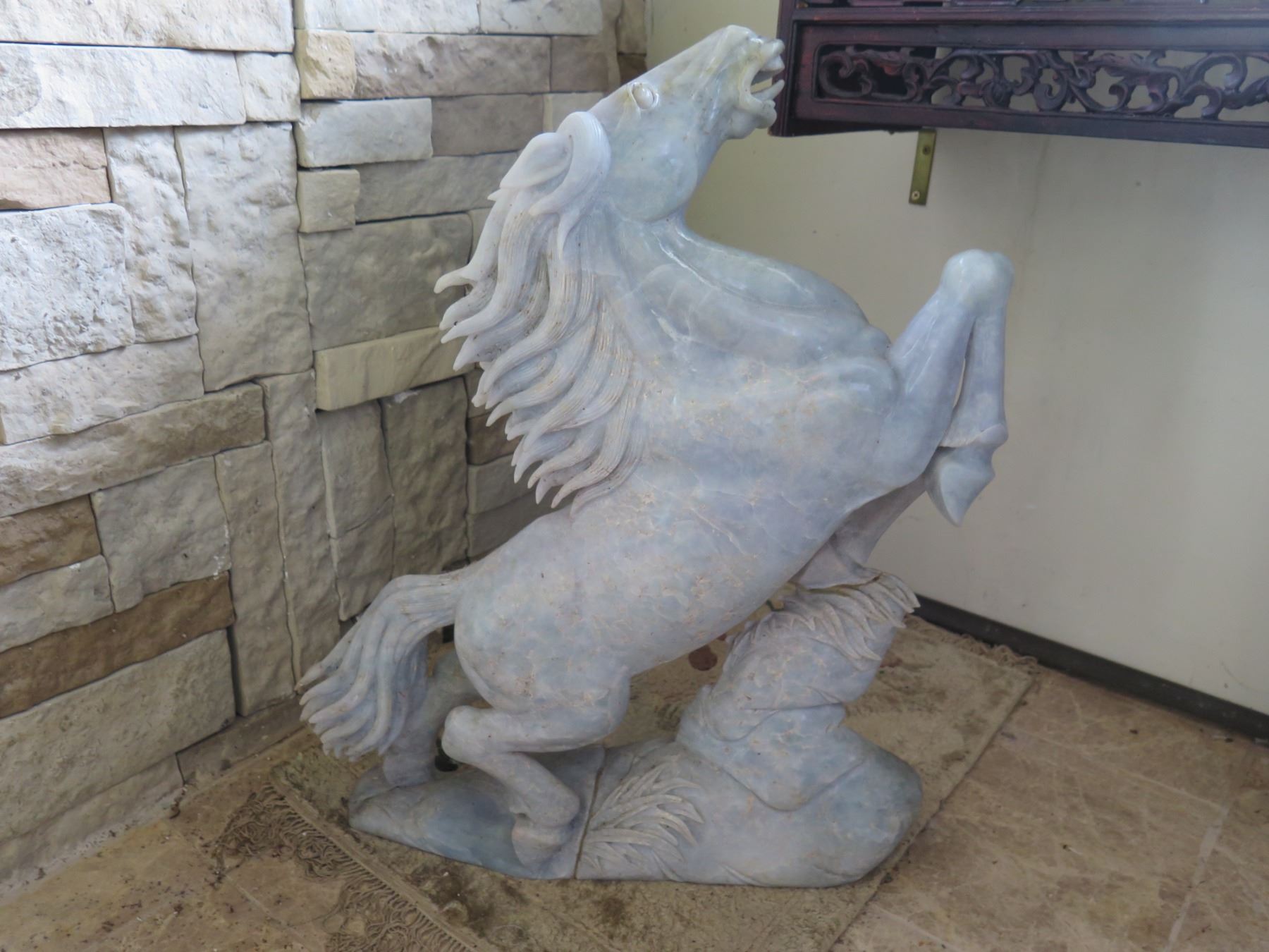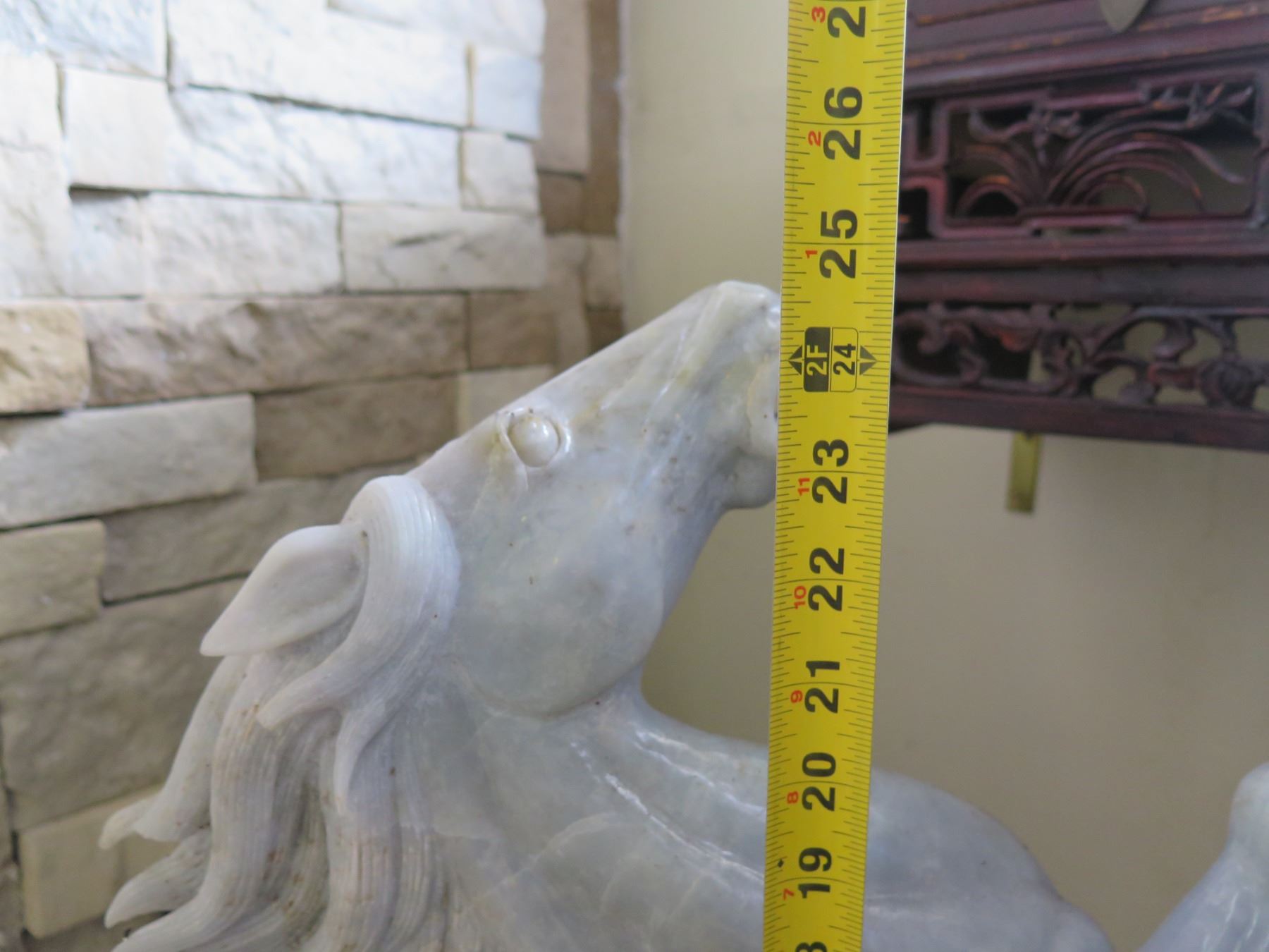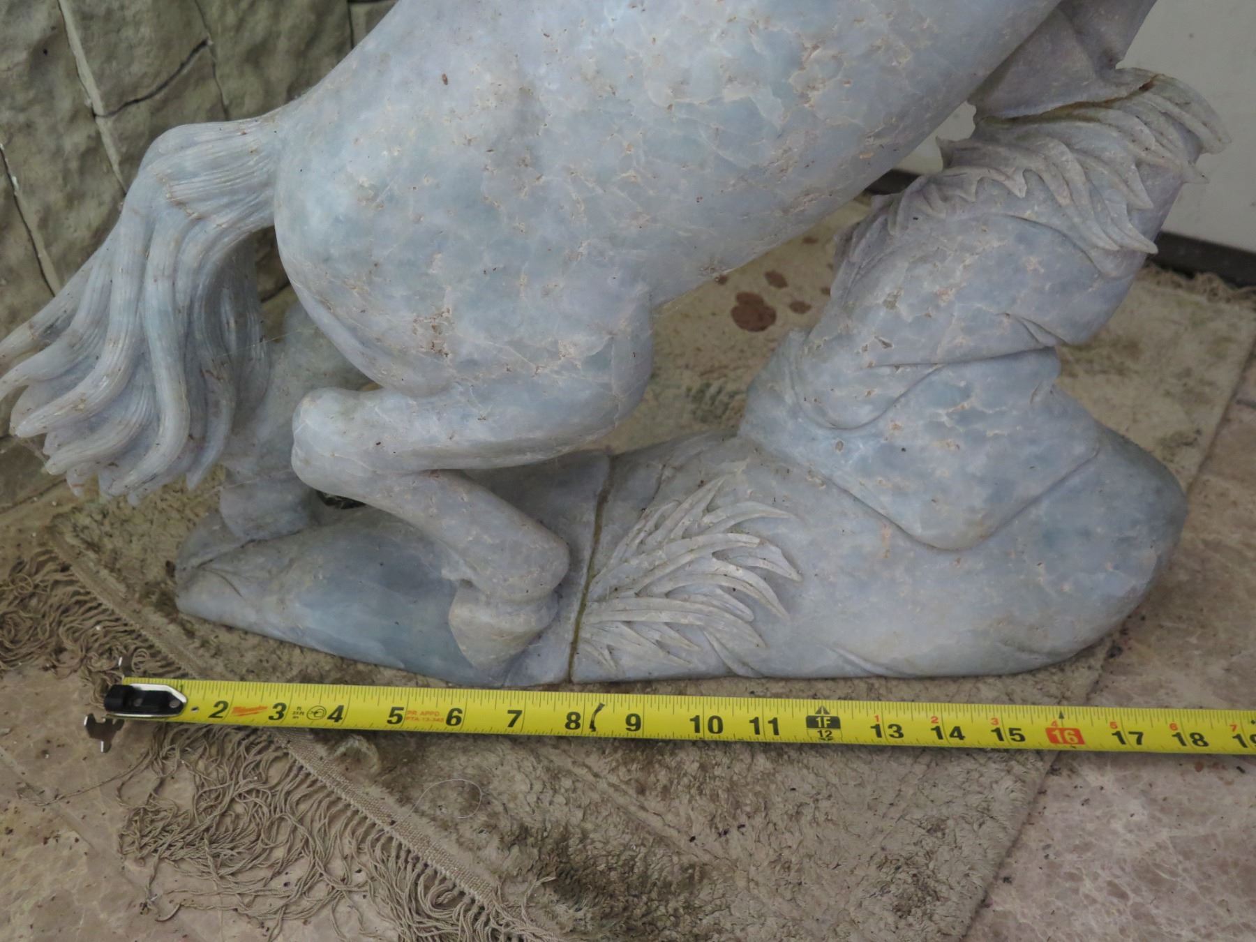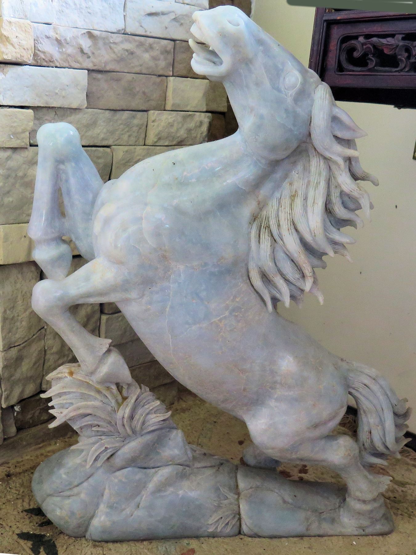 Stone Carved Horse Statue 18" W, 24.5" Tall