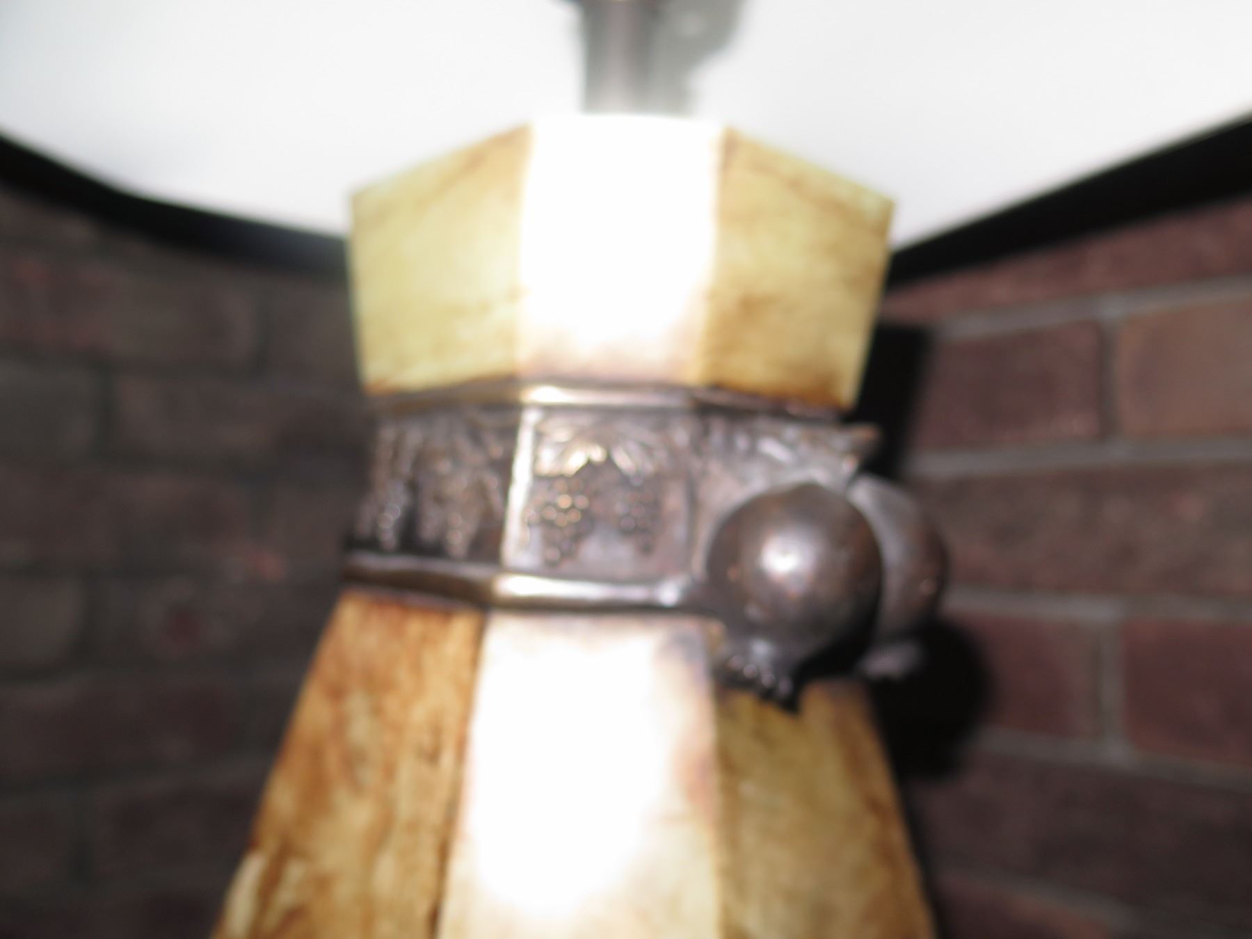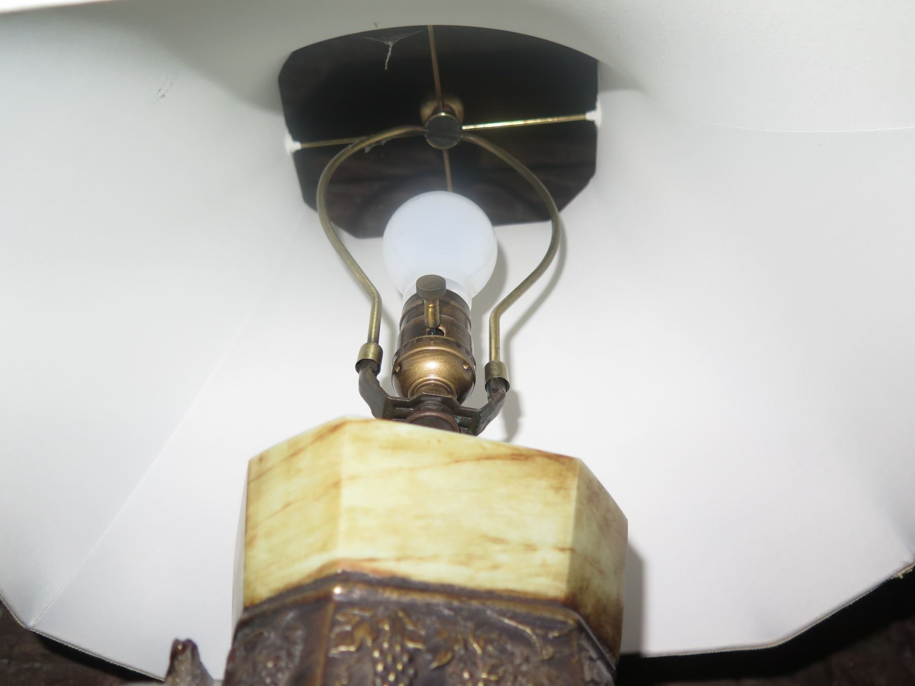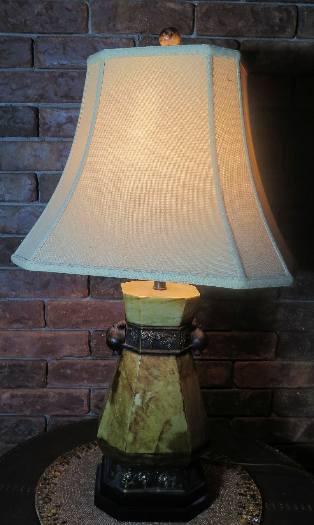 Stone Table Lamp (Heavy) w/ Grape Design & White Shade (mat not included)