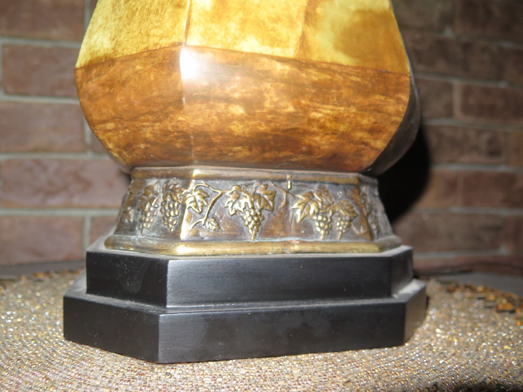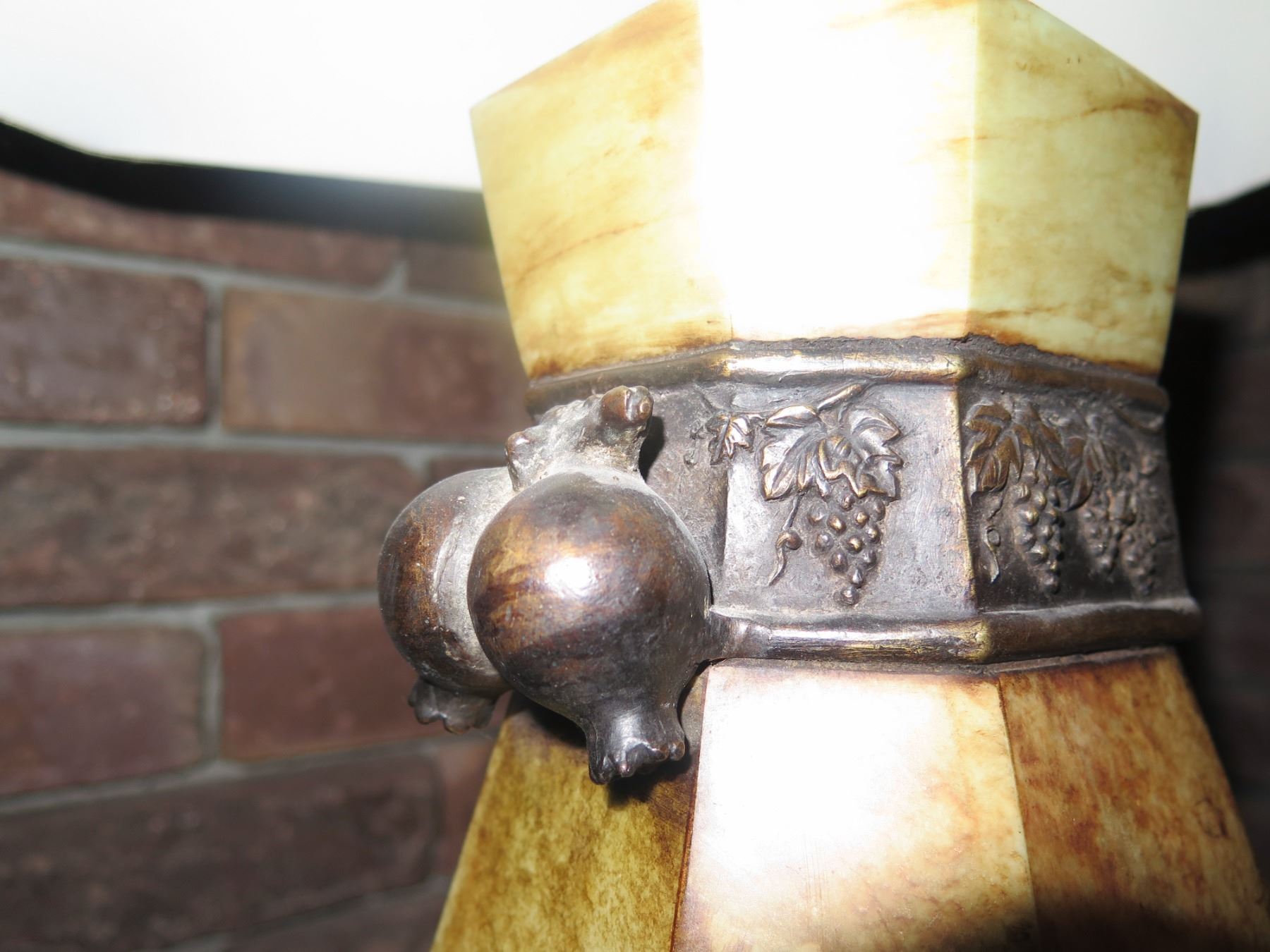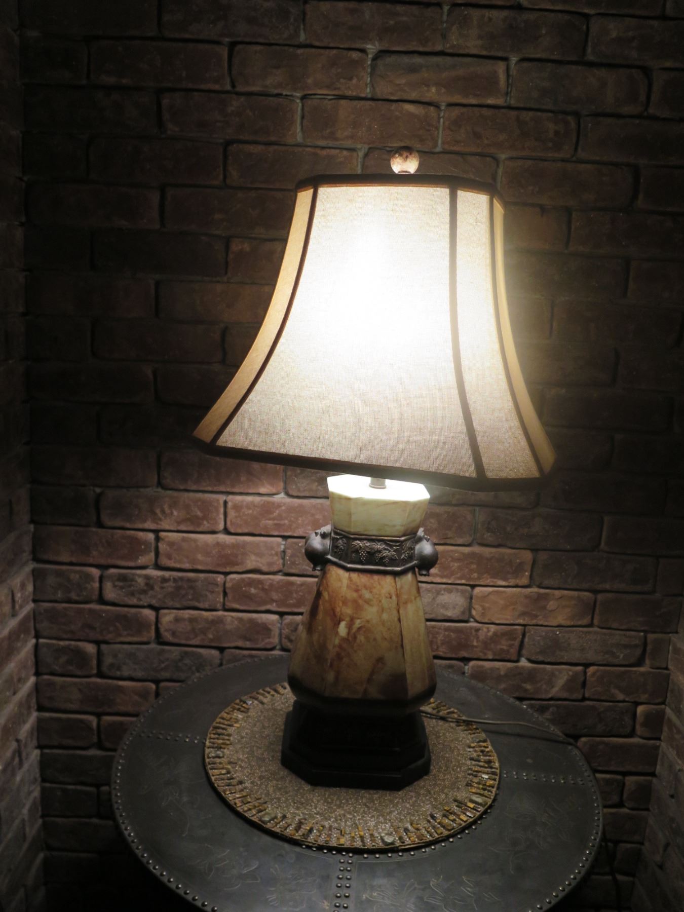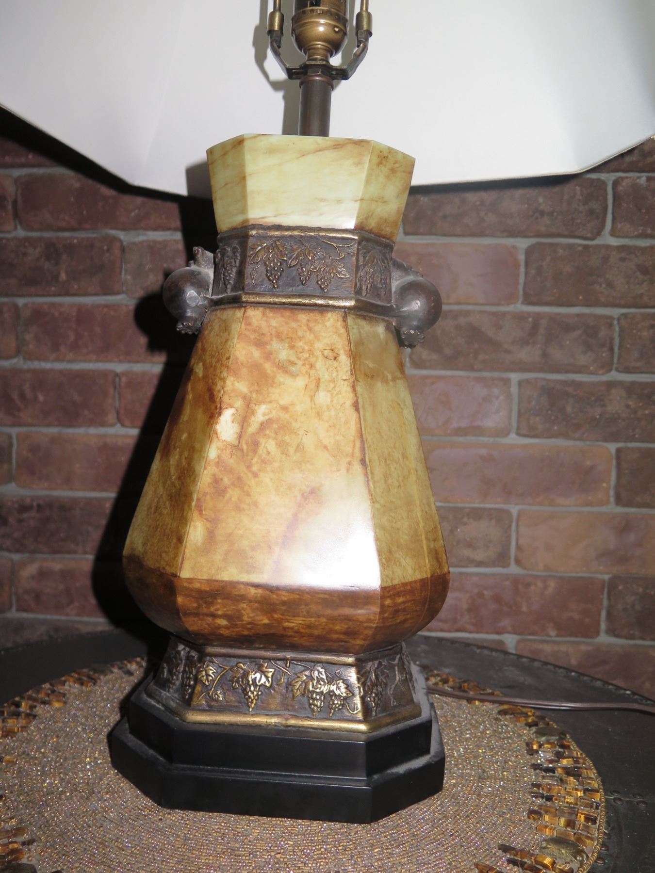 Stone Table Lamp (Heavy) w/ Grape Design & White Shade (mat not included)
