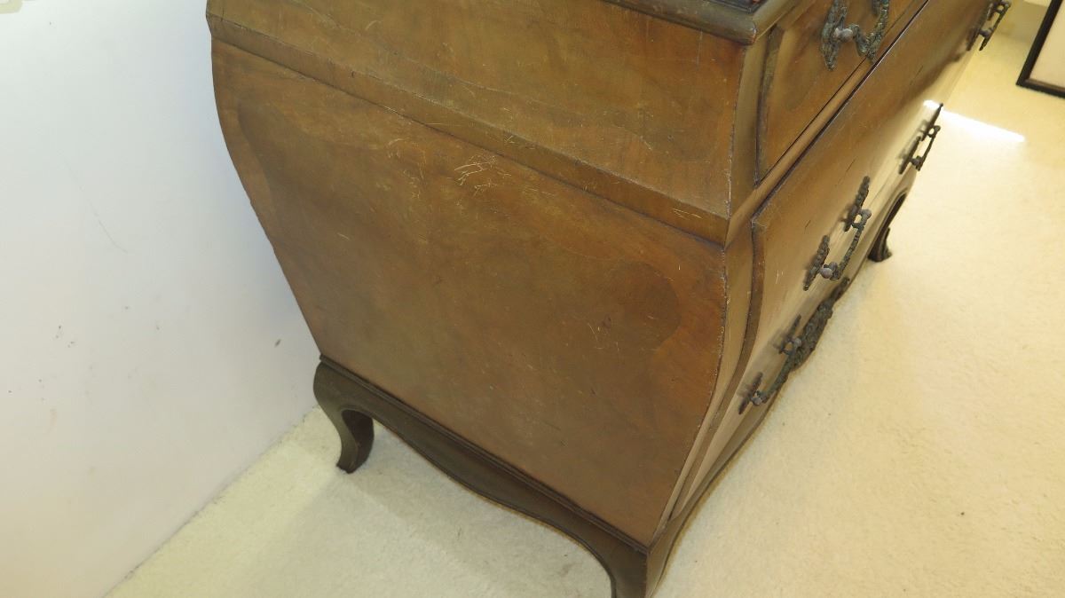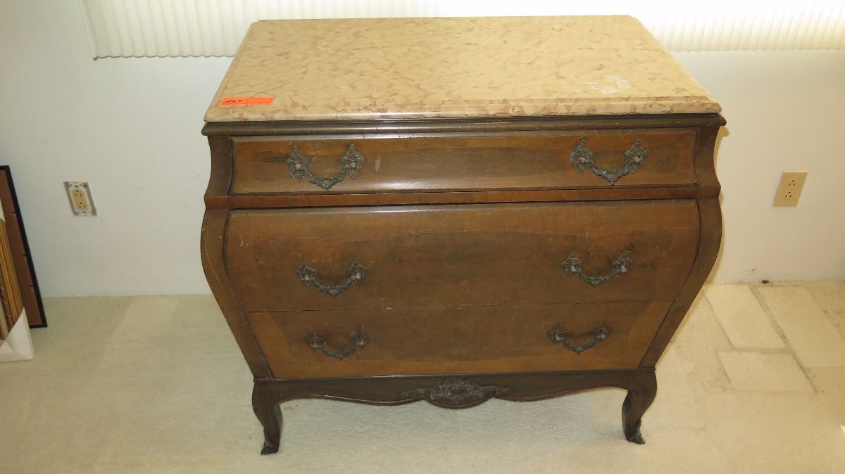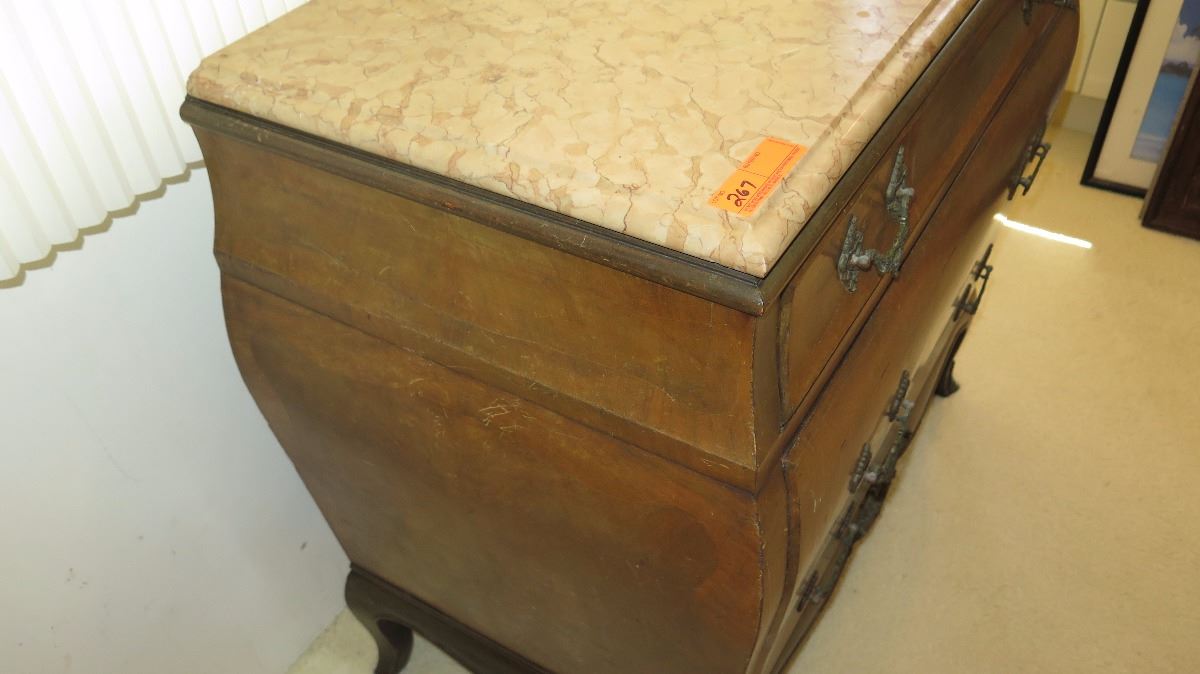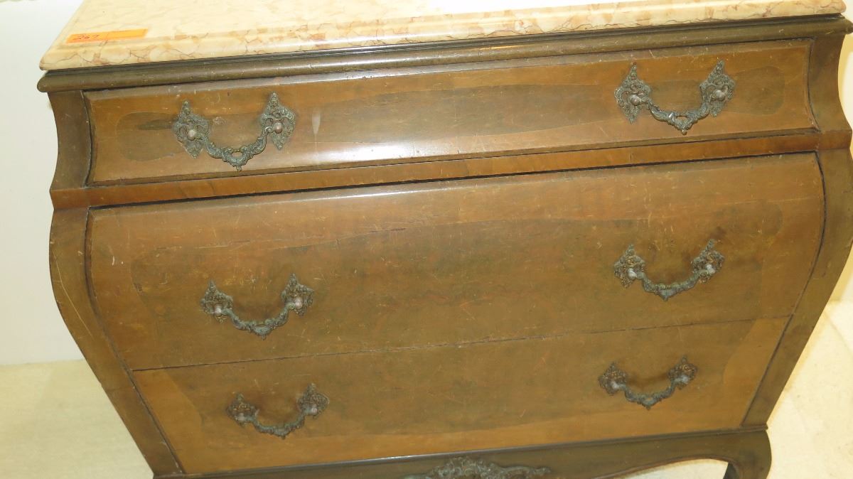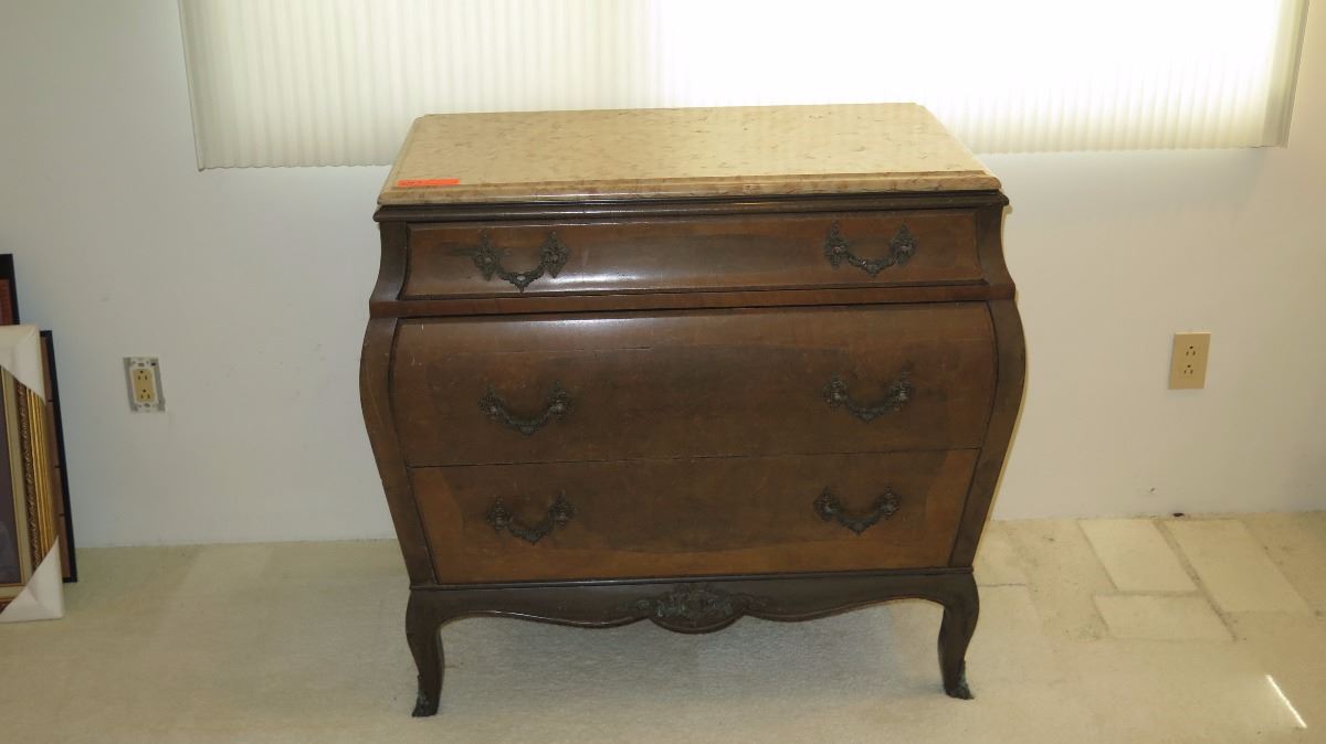 Stone-Topped, Hardwood Bombe Commode w/ Embellished Hardware 38x21x35