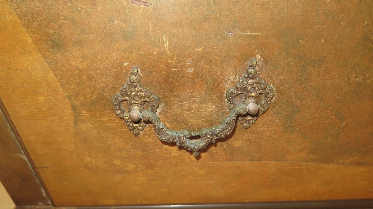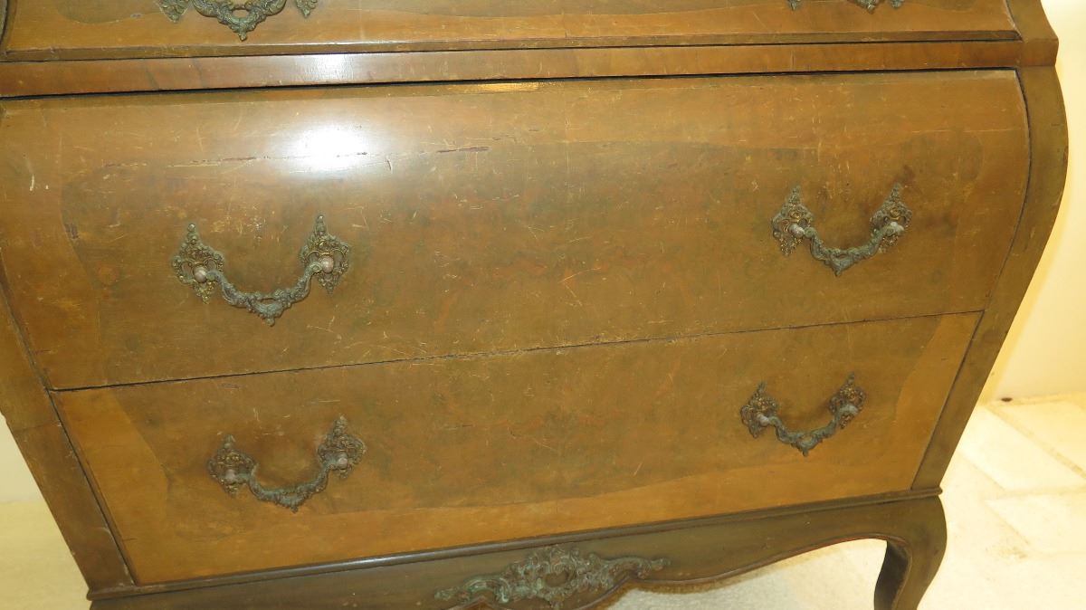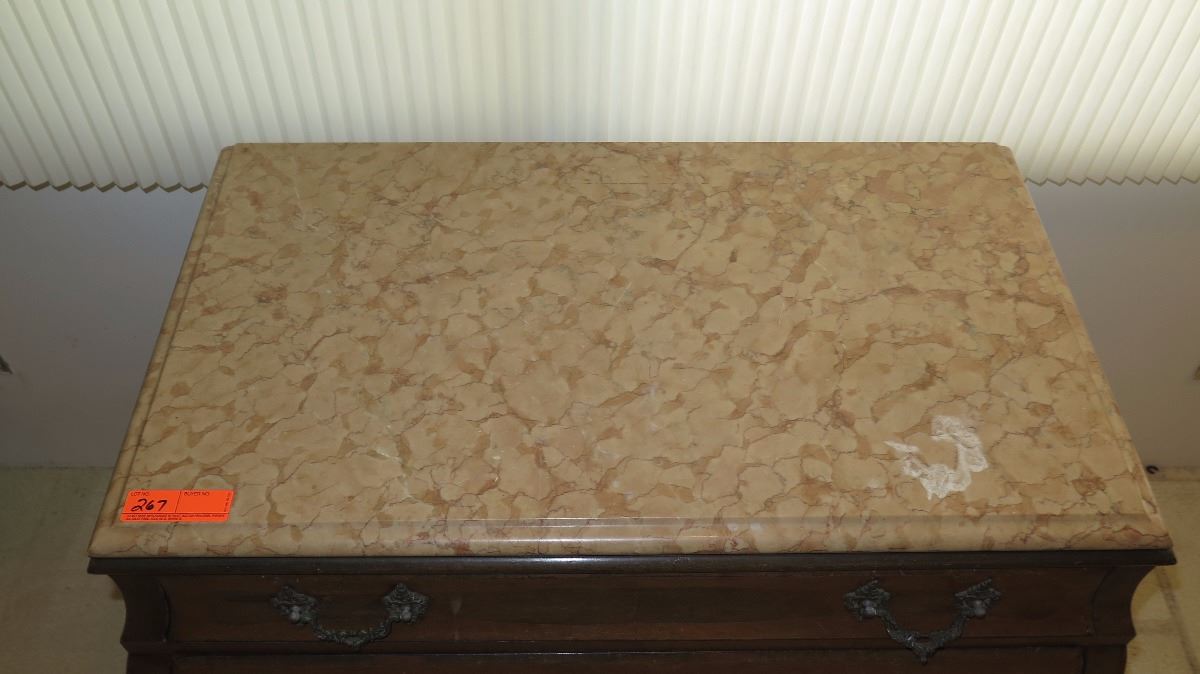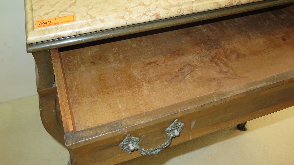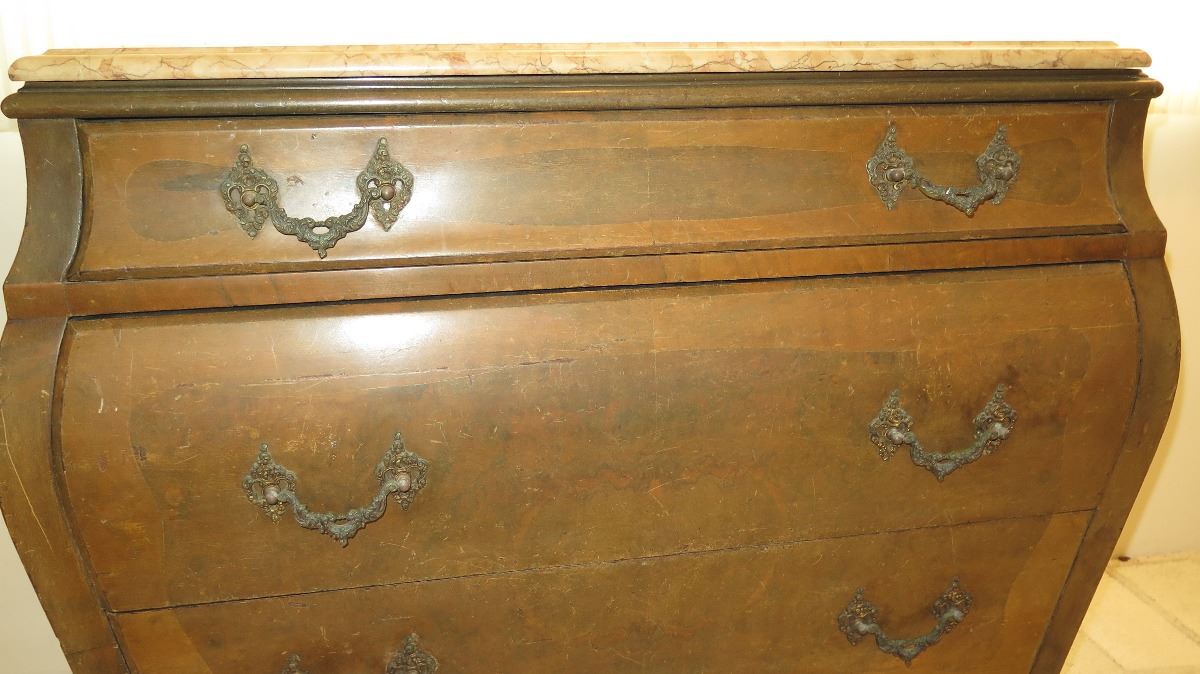Stone-Topped, Hardwood Bombe Commode w/ Embellished Hardware 38x21x35