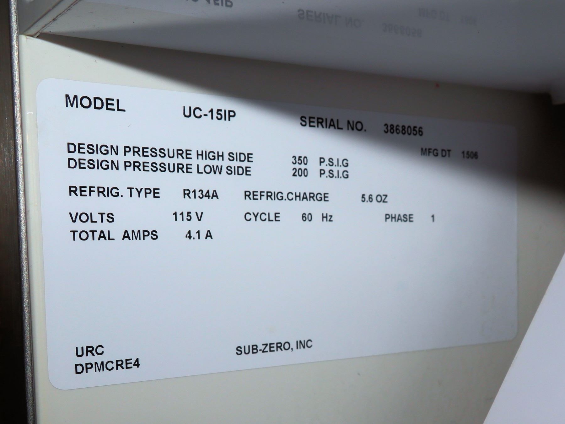 Sub-Zero Model UC-15IP Undercounter Ice Maker w/Cabinet Door (includes 18" cabinet enclosure). For your convenience, cabinetry, refrigerators, ranges, ovens, cooktops will already have been de-installed by the pick dates and will be ready to go out the door.