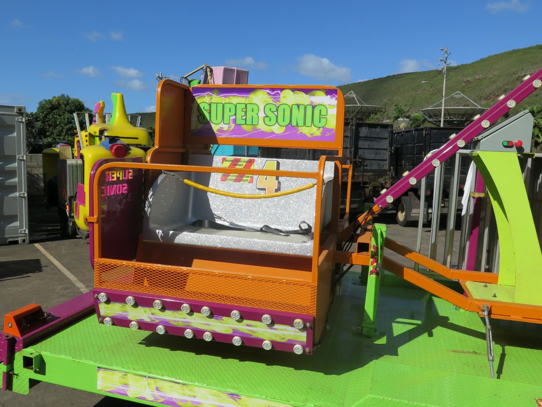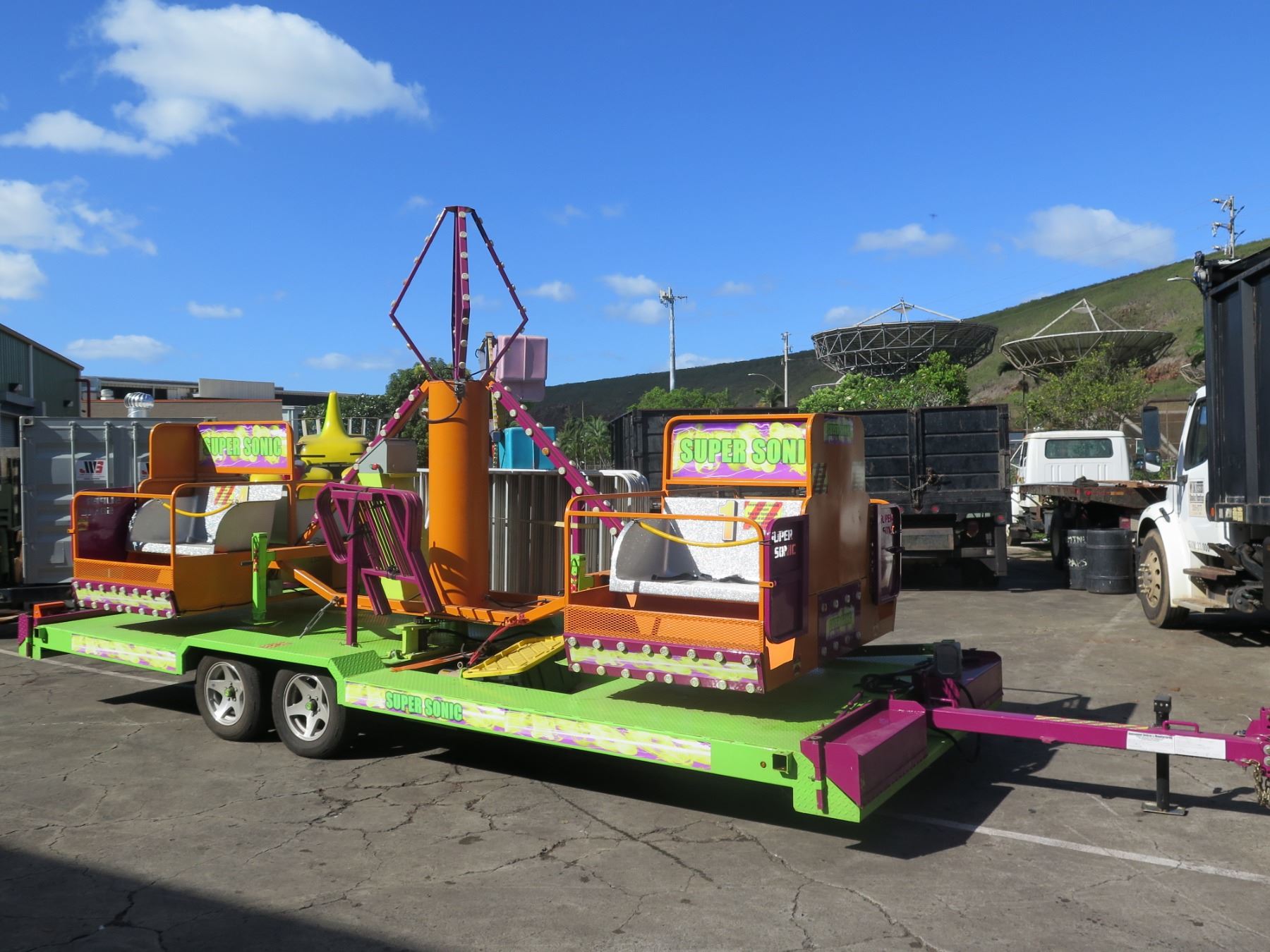Supersonic Carnival Ride. The Supersonic Ride manufacturer: Amusement Devices and Maufacturing. This spin ride is fun for all kinds. Four total carts with 2-3 kids in each cart. Beautiful LED lights. Need a space of 30x30. Comes with safety fencing. The opening bid is $1000, with a reserve price of $10,000. Oahu Auctions is not obligated to sell this if the reserve price is not reached. However, the highest bid (if under $10,000) may be considered. The current owner reports that there are no service or maintenance records for this ride. It is not registered and does not have plates. Seller recommends that a qualified technician examines this ride before putting it into use. This item is in Pearl City. Pick-up will be by appointment only.