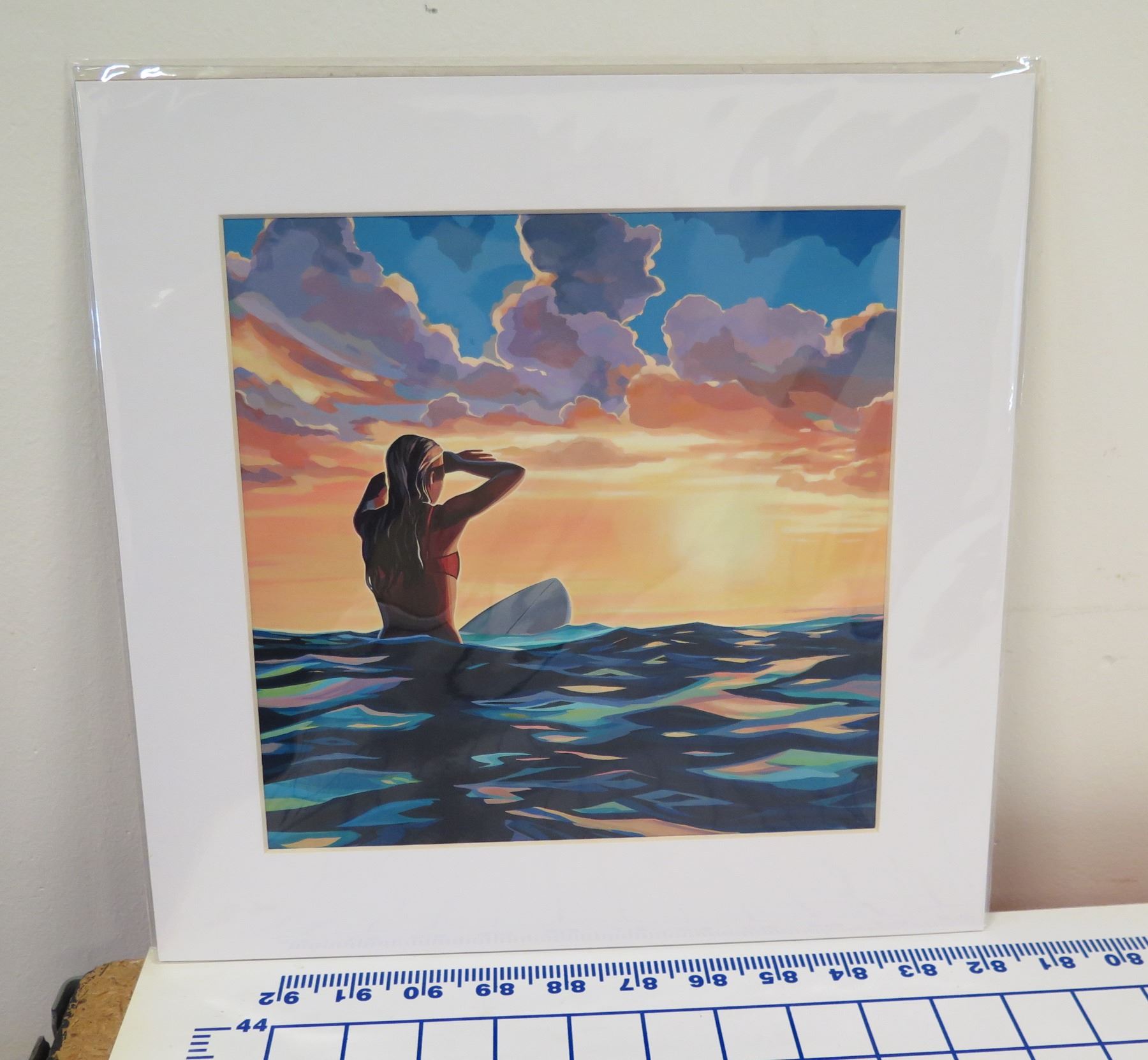 Surfer Sunrise Matted Paper Art Print 12" x 12"