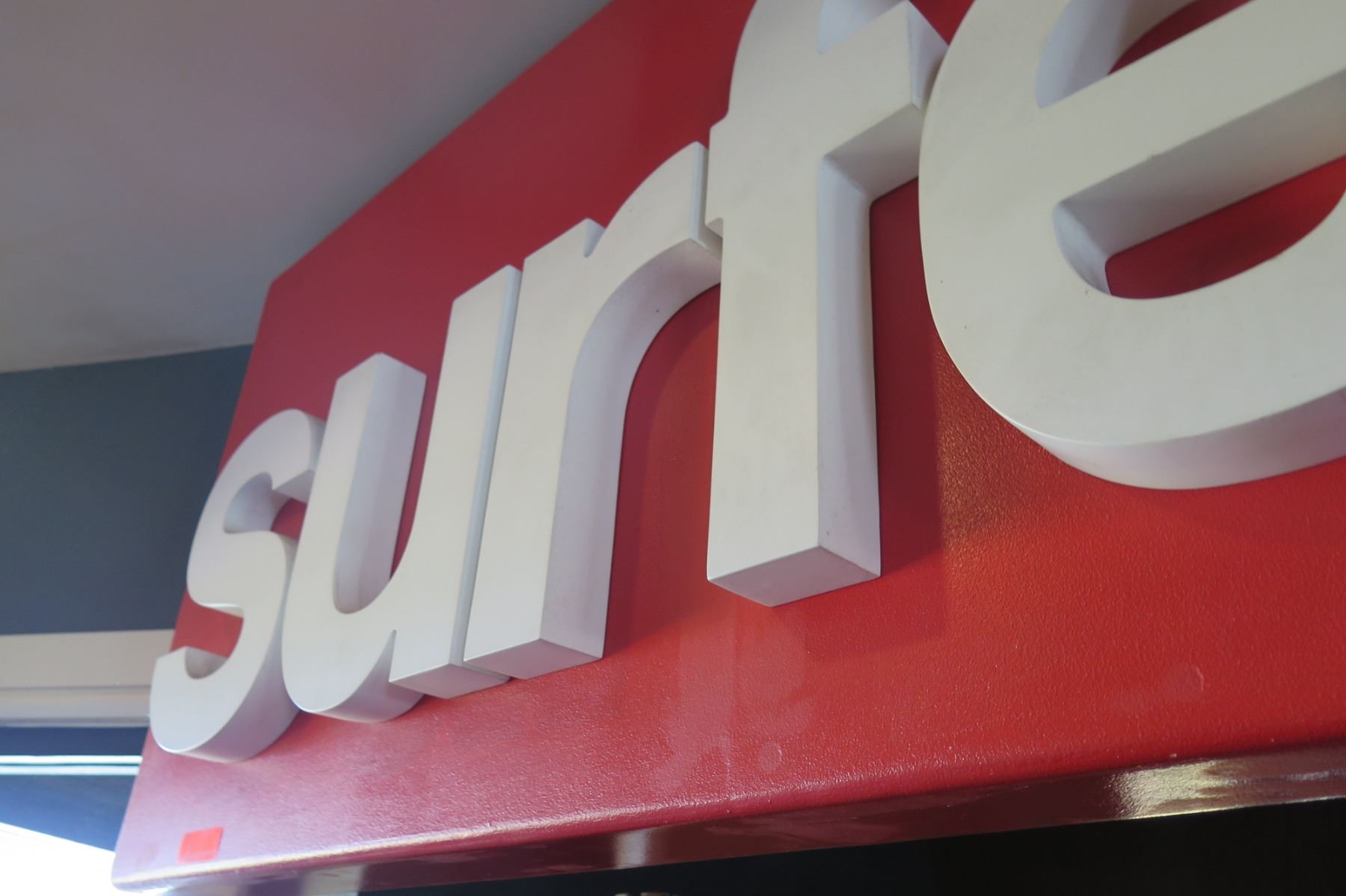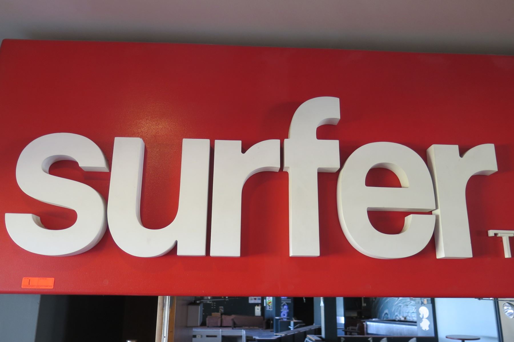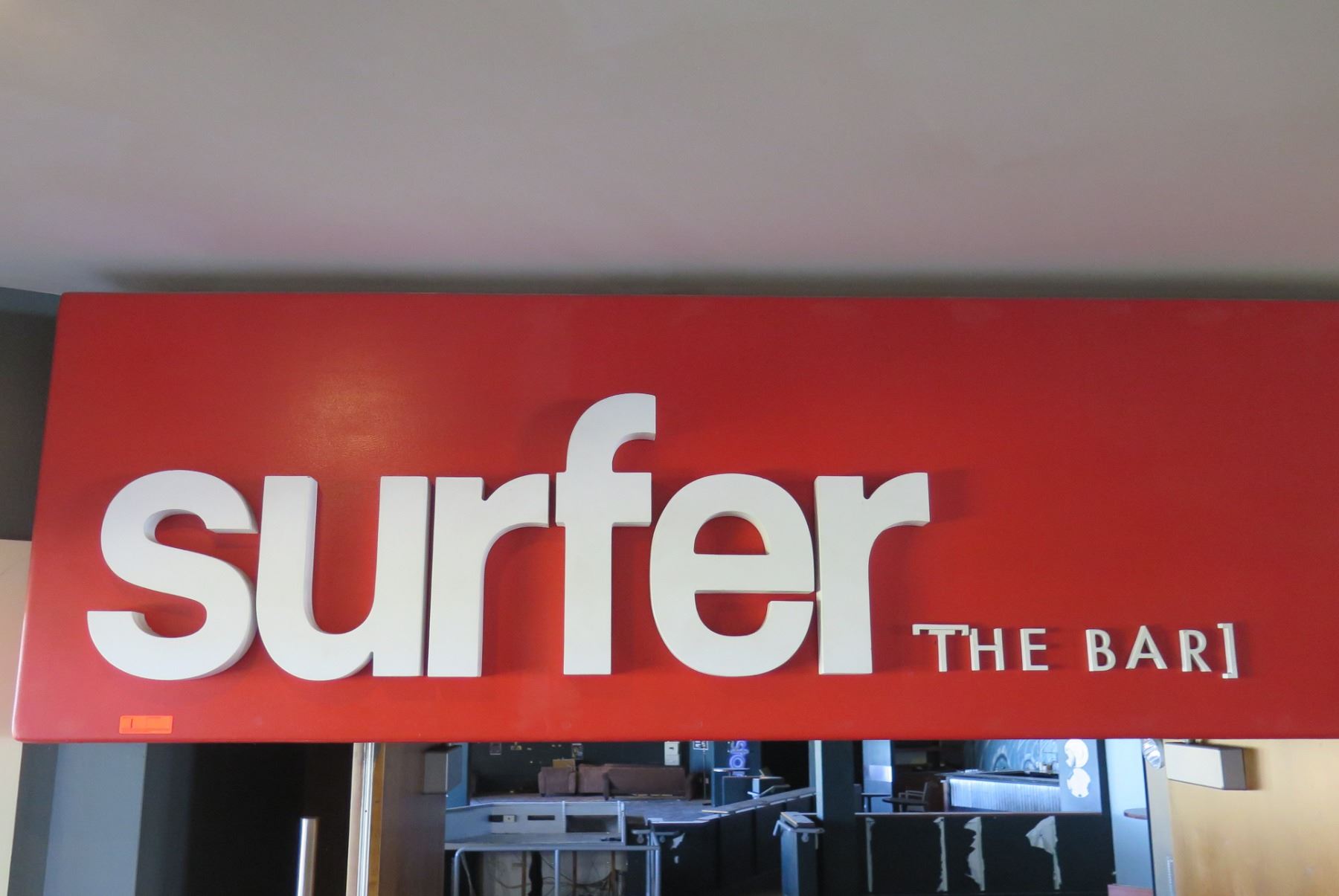 "Surfer The Bar" Large Red & White Sign w/ Mounting Hardware 167" x 31" x 5"