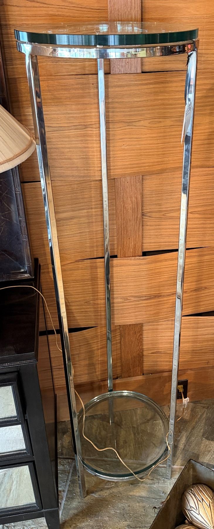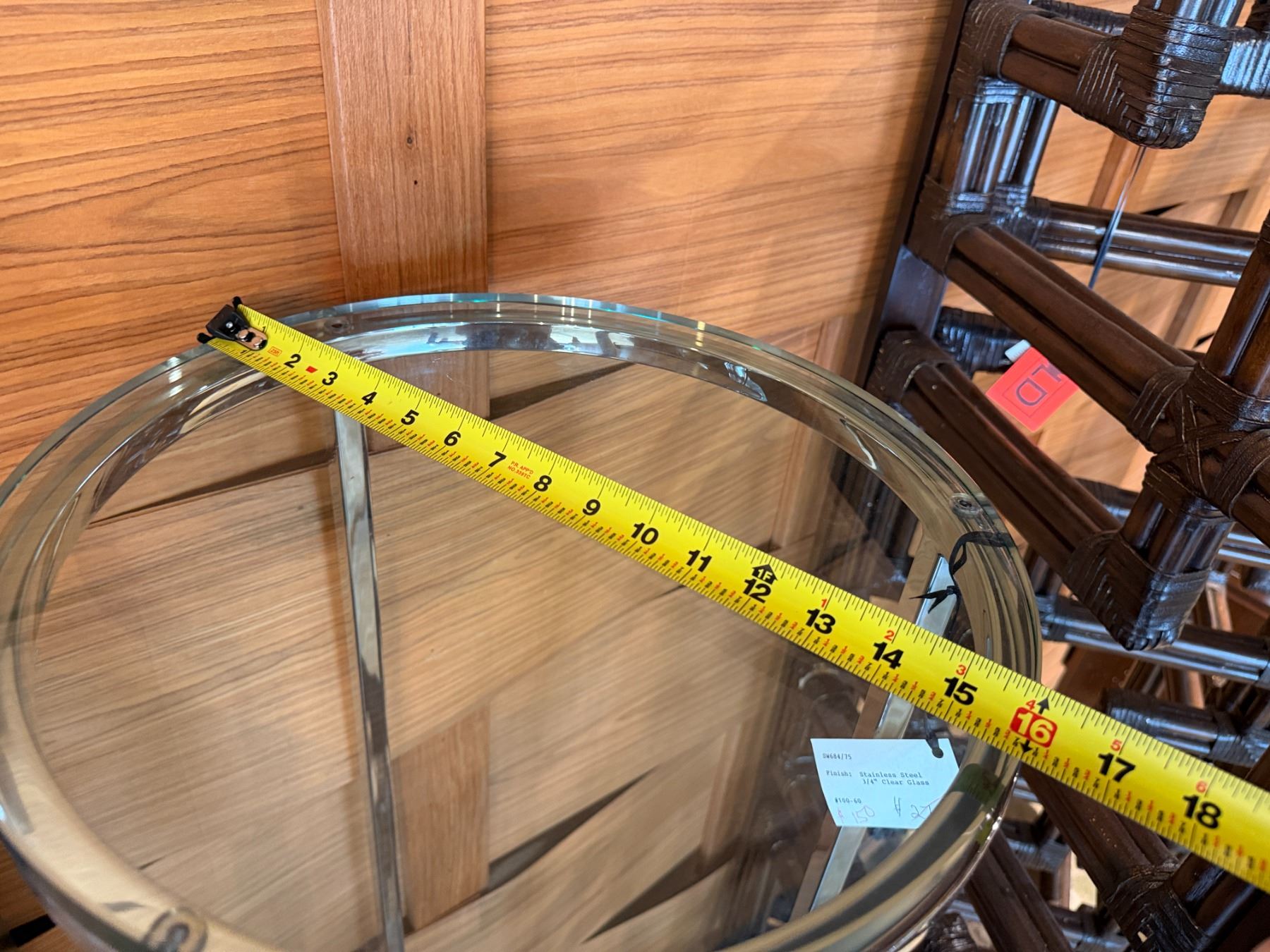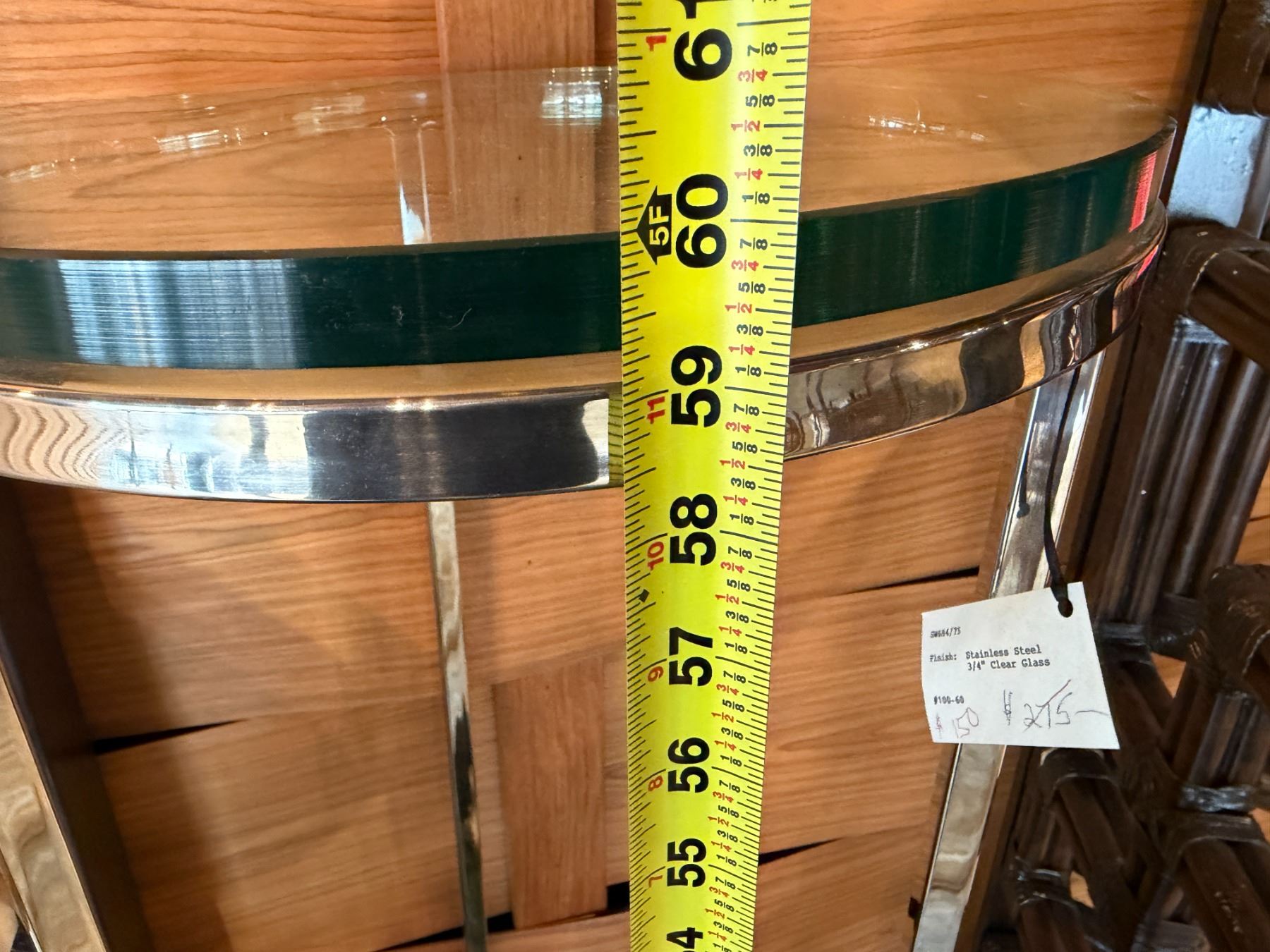 Swaim Round Stainless Steel Table w/ Glass Top & Undershelf 16" Dia, 60"H