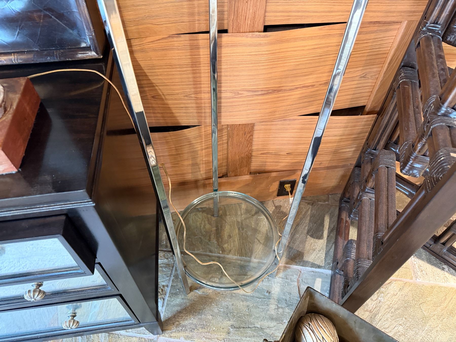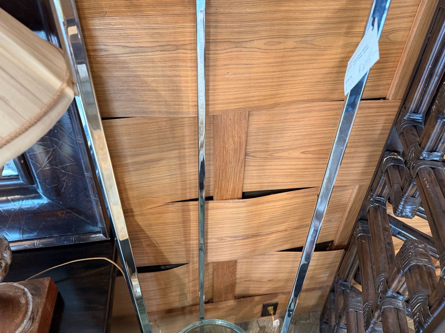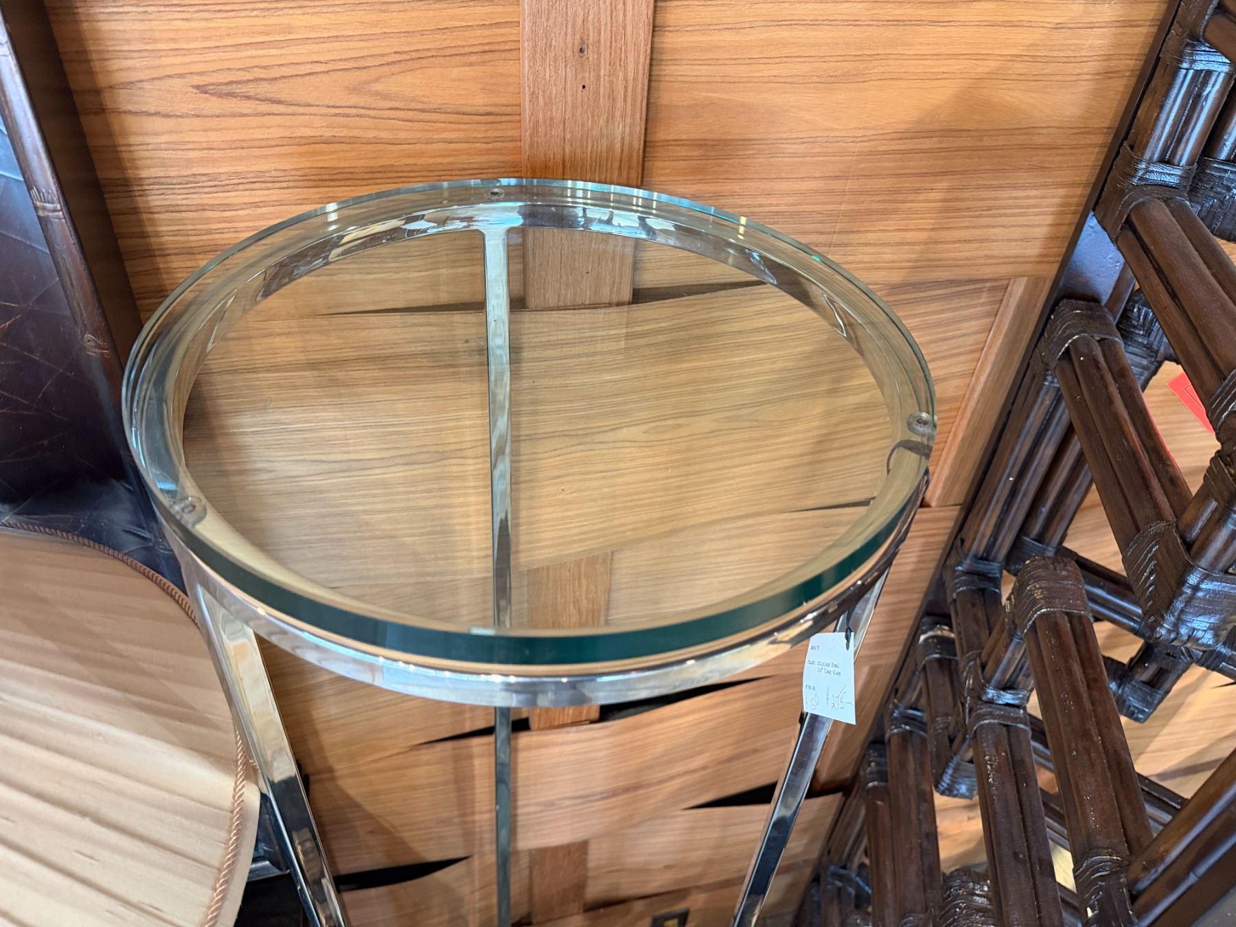 Swaim Round Stainless Steel Table w/ Glass Top & Undershelf 16" Dia, 60"H