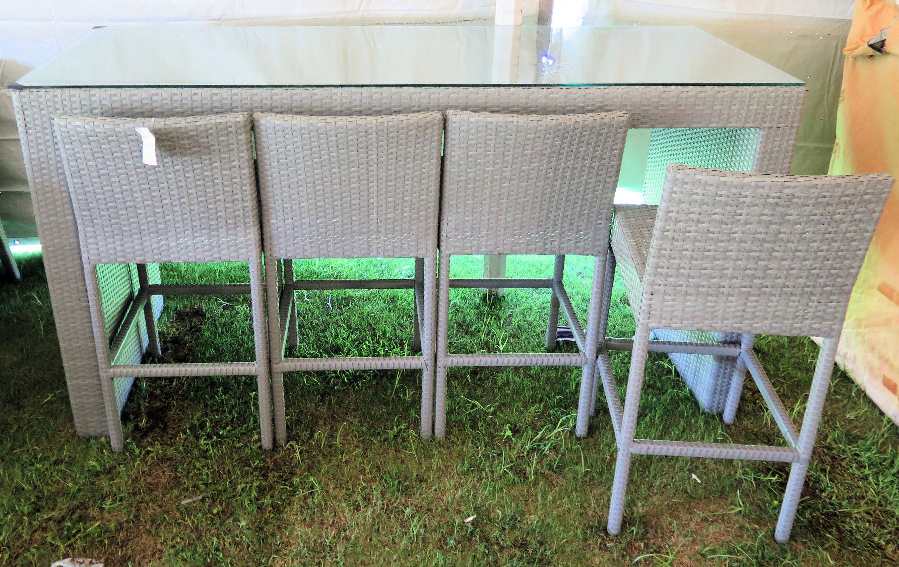 Synthetic Bar-Height Rattan Table 81 x32 x43 H w/ 4 Matching Stools