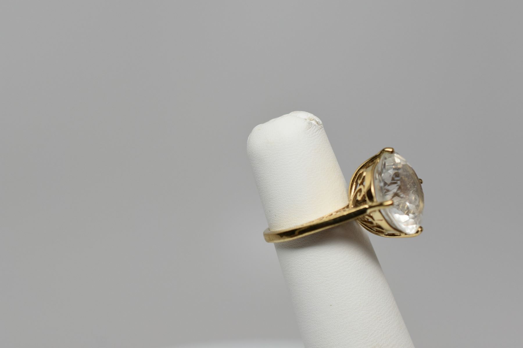 Synthetic White Zircon Ring Approx 9.5 ct, Fenestrated Design, 10K Yellow Gold, 6.2 grams