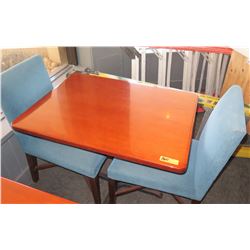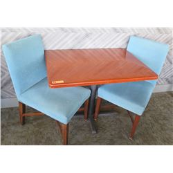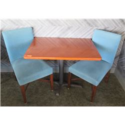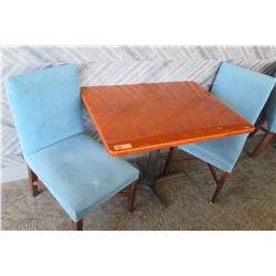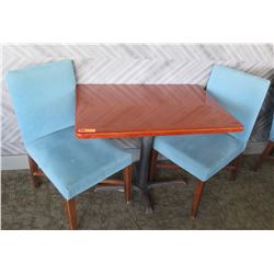 Rectangular Wooden Table w/ Metal Base (38" x 28" x 30") & 2 Upholstered Chairs