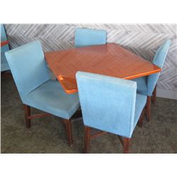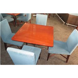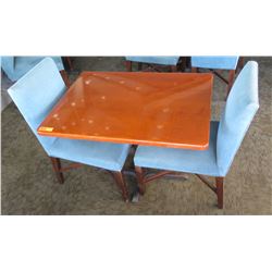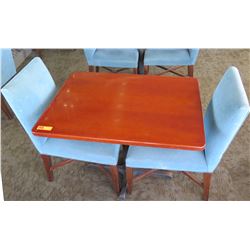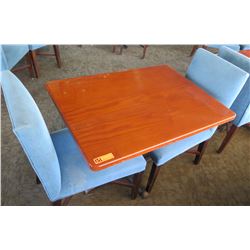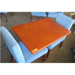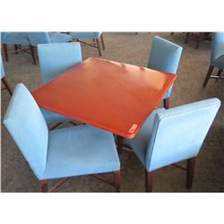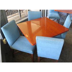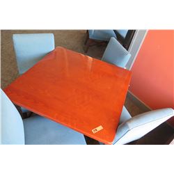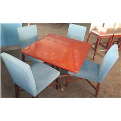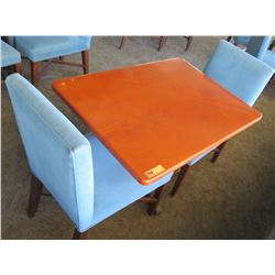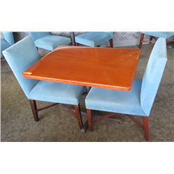 Square Wooden Table w/ Metal Base (38" x 38" x 29") & 4 Upholstered Chairs