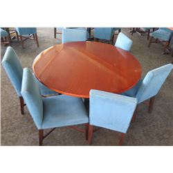 Large Round Table w/ Metal Base (30"Dia, 30"H) & 6 Upholstered Chairs