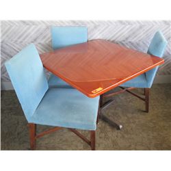 Square Wooden Table w/ Metal Base (38" x 38" x 29") & 3 Upholstered Chairs