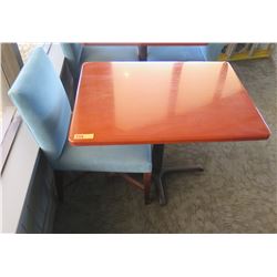 Rectangular Wooden Table w/ Metal Base (38" x 28" x 30") & 1 Upholstered Chair