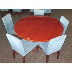 Large Round Table w/ Metal Base (30"Dia, 30"H) & 5 Upholstered Chairs