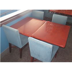 2 Rectangular Wooden Tables w/ Metal Base (38" x 28" x 30") & 4 Upholstered Chairs