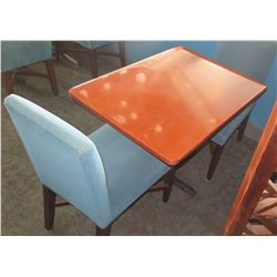 Rectangular Wooden Table w/ Metal Base (38" x 28" x 30") & 2 Upholstered Chair165 - Rectangular Wooden Table w/ Metal Base (38" x 28" x 30") & 2 Upholstered Chair