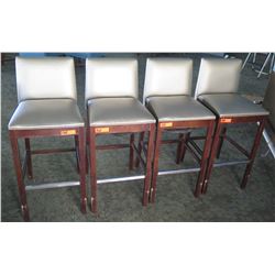 Qty 4 Silver Wooden Bar-Height Stools w/ Upholstered Back & Seat (40"H Backrest)