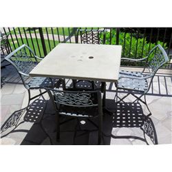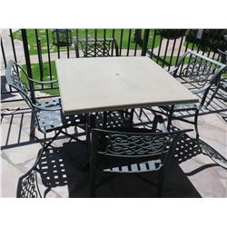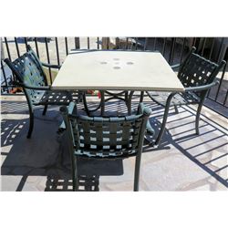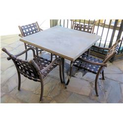 Square Hard Surface Patio Table w/ Metal Base (41"x41"x29"H) & 4 Metal Chairs171 - Square Hard Surface Patio Table w/ Metal Base (41"x41"x29"H) & 4 Metal Chairs