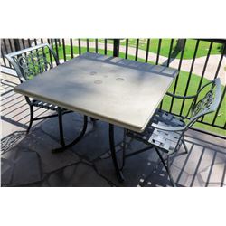 Square Hard Surface Patio Table w/ Metal Base (41"x41"x29"H) & 3 Metal Chairs