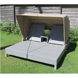 Gray Poolside Lounger for Two w/ Canopy 69" x 84" x 55"H Woven Synthetic Material. Photo shown is a stock photo. Expect to find minor...