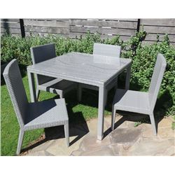 Gray Table w/ Removable Plexiglass Top (41.5"x41.5"x30") & 4 Chairs, Woven Synthetic Material. Photos shown are stock photos. Exp...
