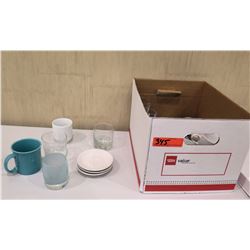 Box Misc Dishes & Glassware: Saucers, Mugs, Glasses, etc