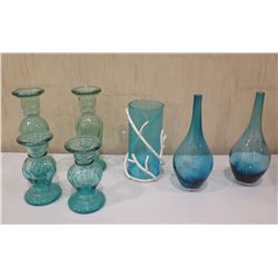 Qty 7 Aqua Glass Vases