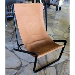 Folding Leather Sling Chair w/ Black Metal Frame