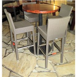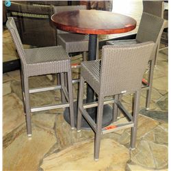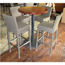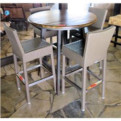 Round Wood Pedestal Table & 4 Gray Woven Synthetic High Chairs