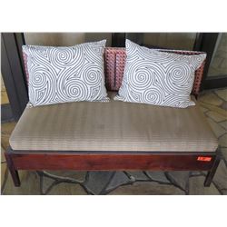 Wood Bench w/ Seat Cushion, Woven Backrest & 2 Decorative Pillows