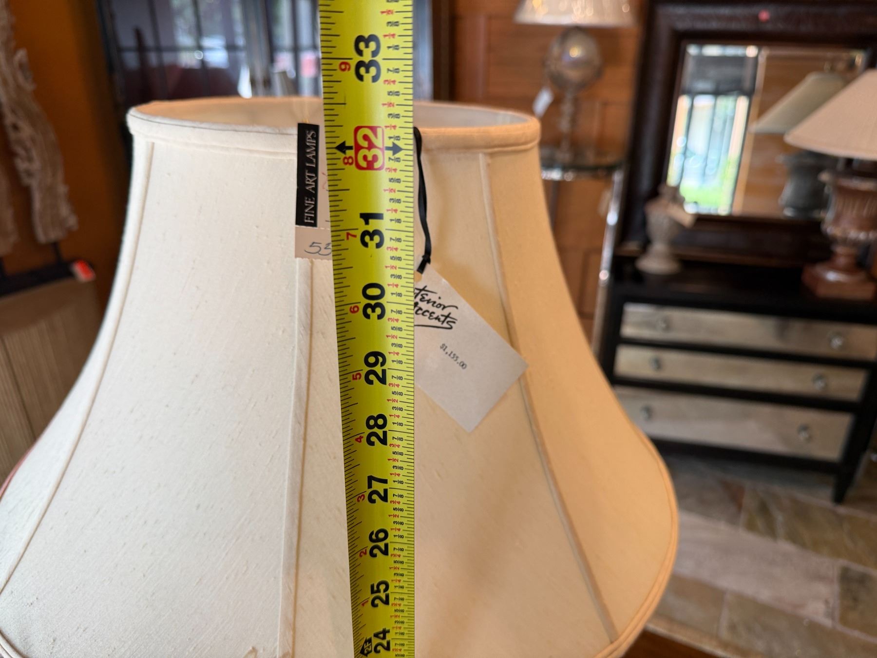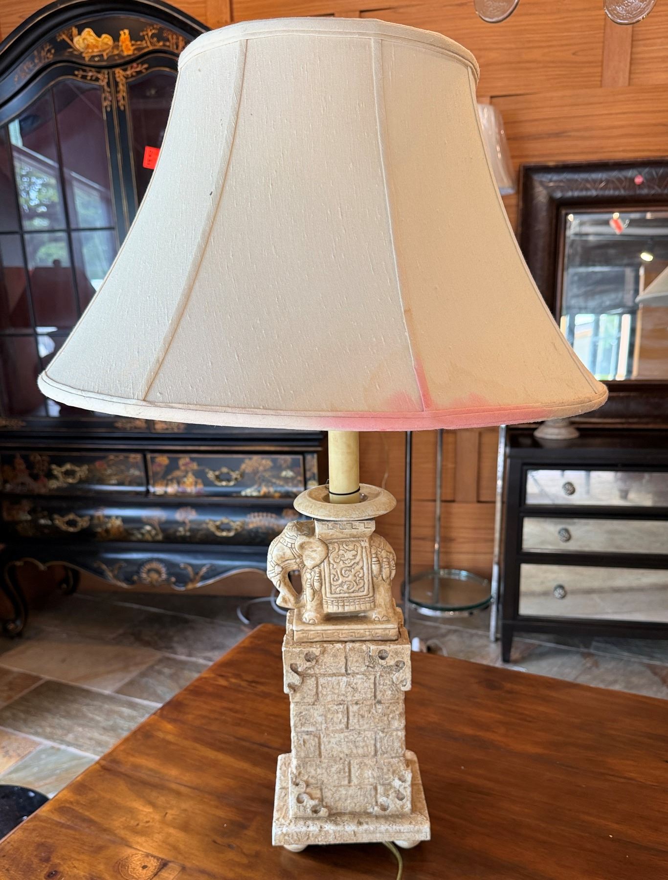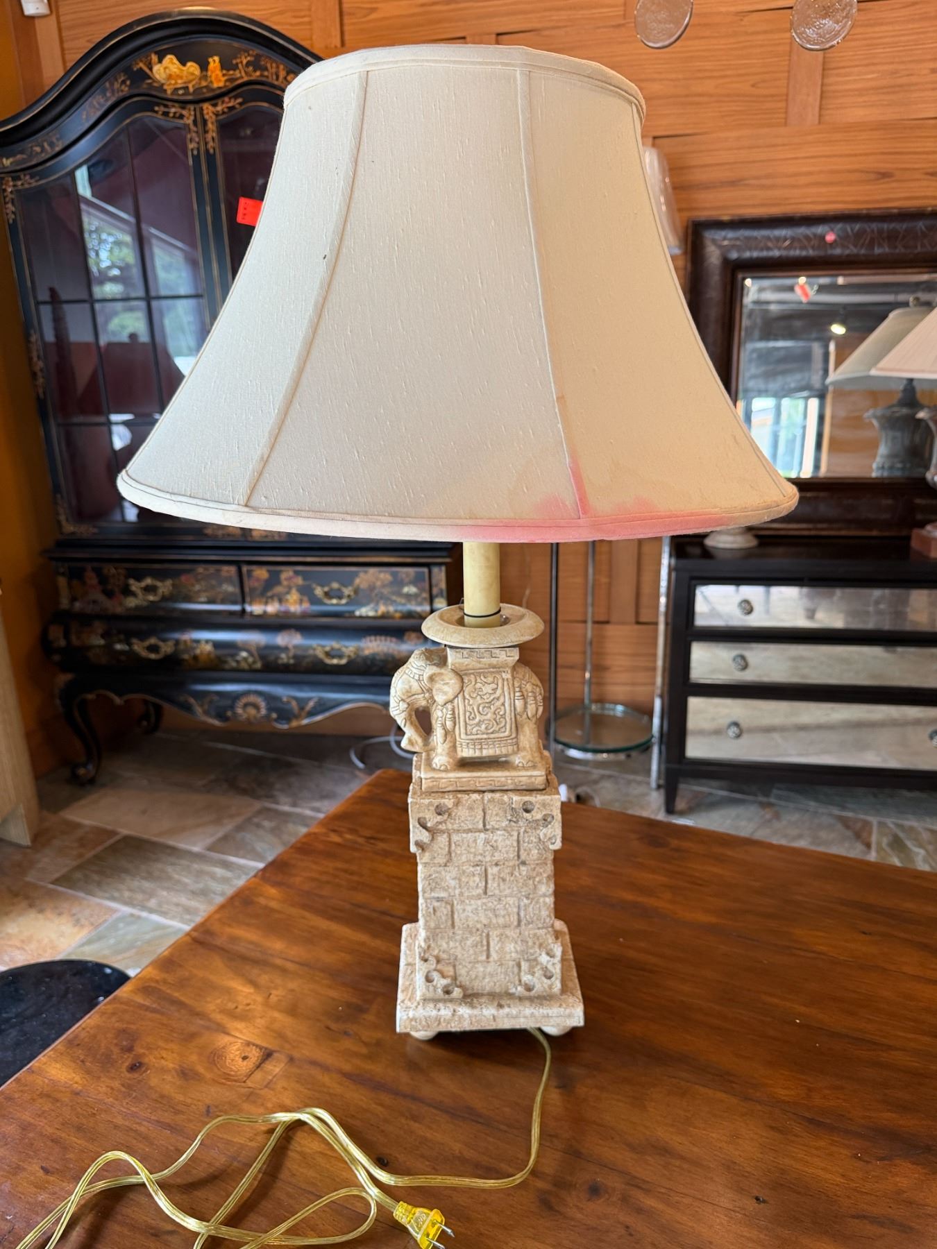 Table Lamp w/ Elephant Motif Vase & Off-White Shade (stained) 32"H