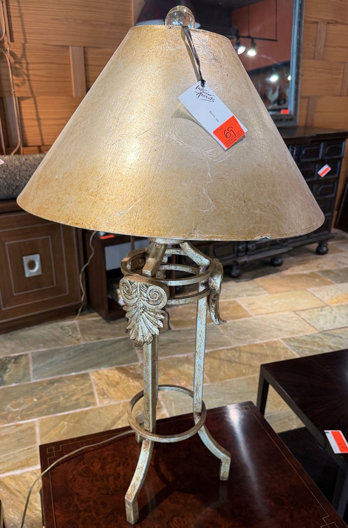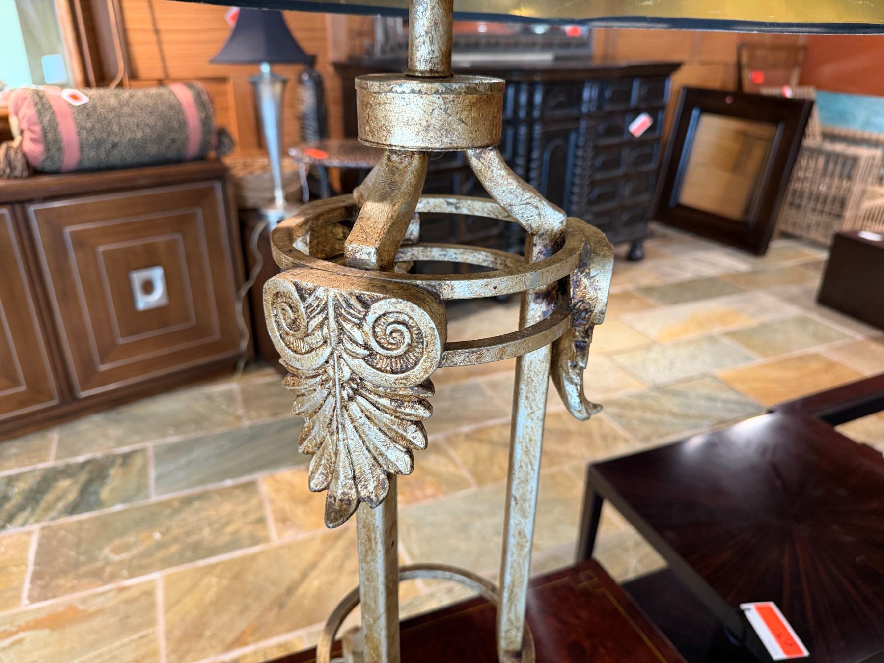Table Lamp w/ Metal Leaf Accents Base & Metallic Shade 37"H