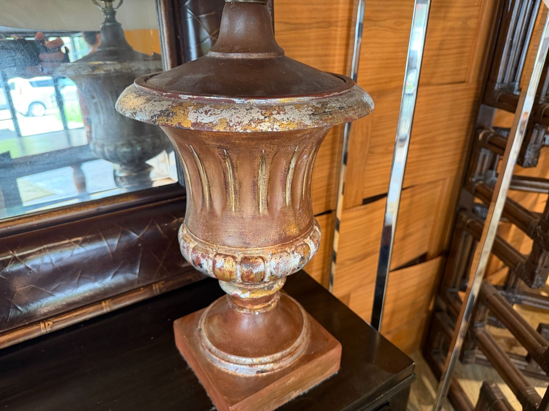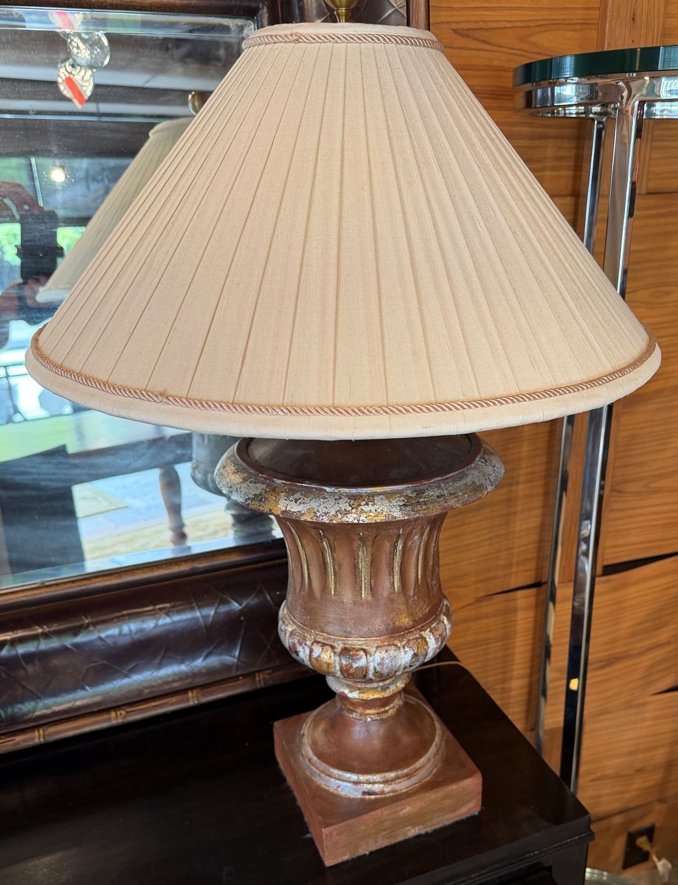 Table Lamp w/ Urn Base & Off-White Shade 28"H
