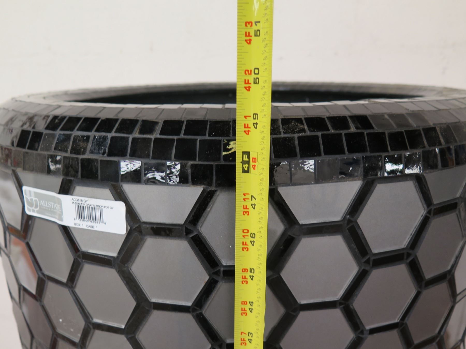 Tall Allstate Planter/Vessel w/ Mirrored Hexagonal Mosaic Tiles 25"D x 49"H