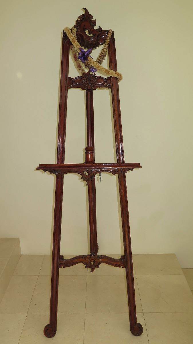 Tall, Carved Dark Wood Easel w/Carved Details - Approx. 24X24X77 H