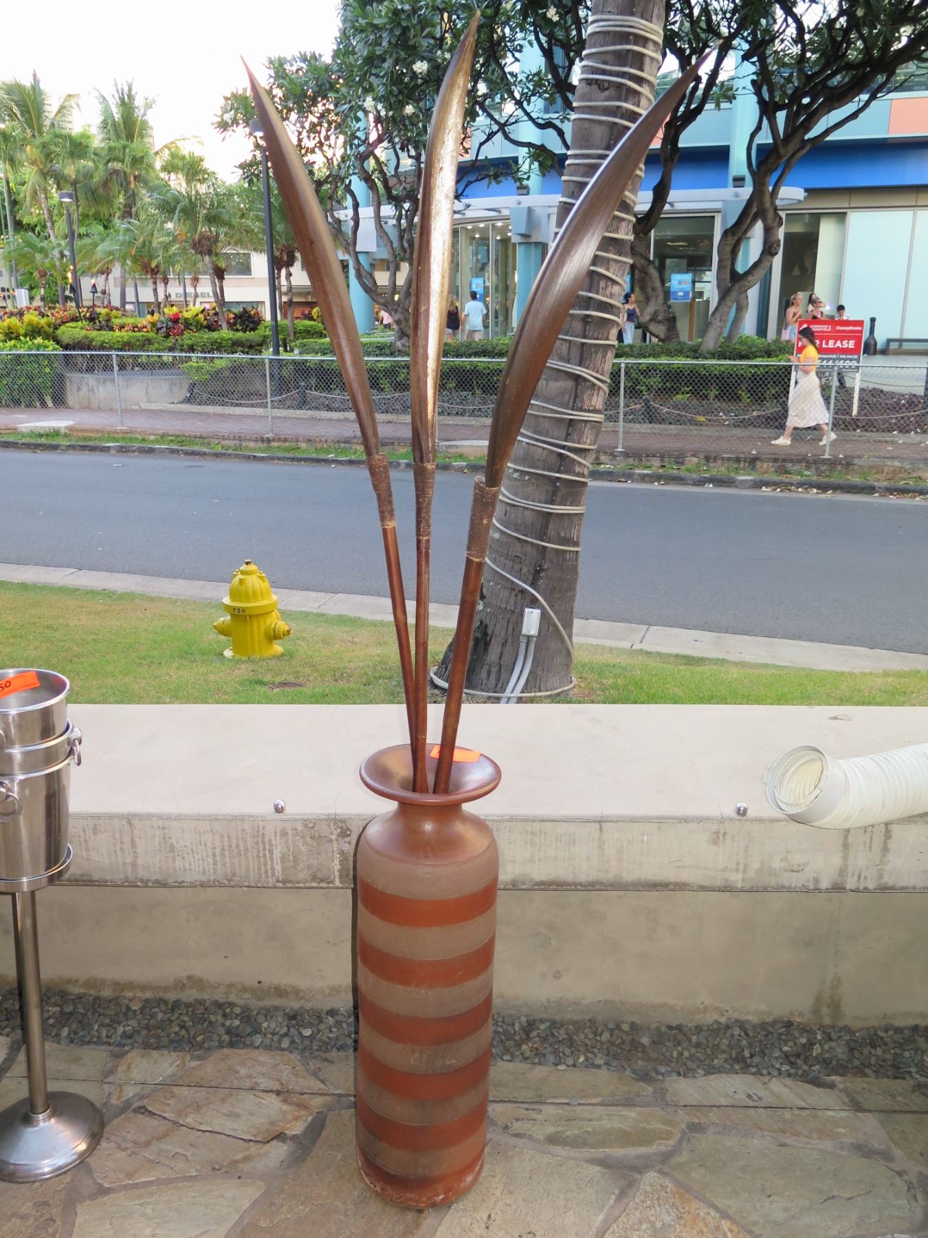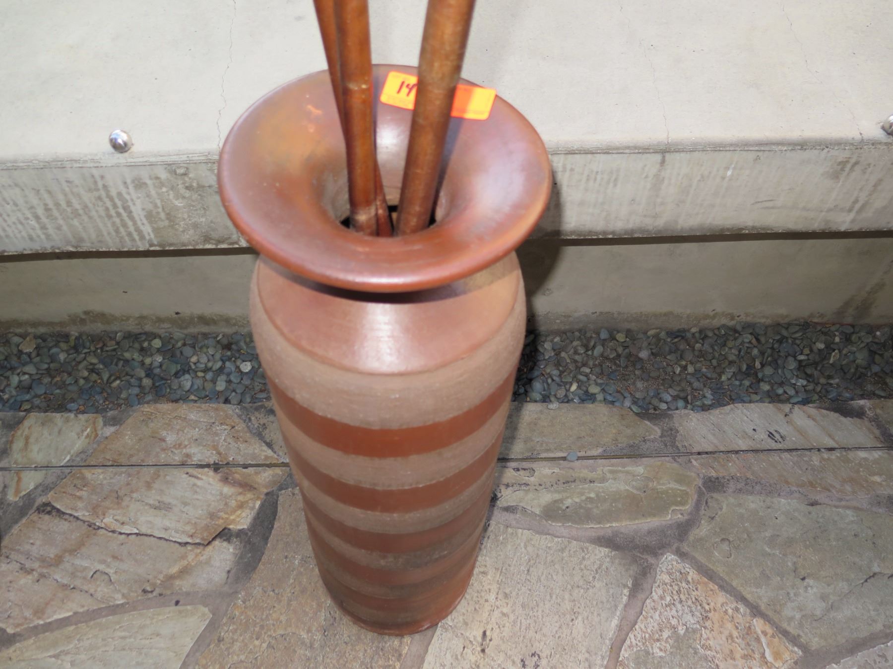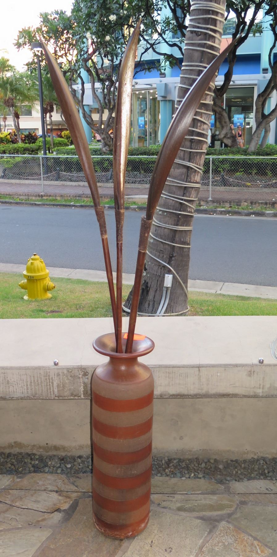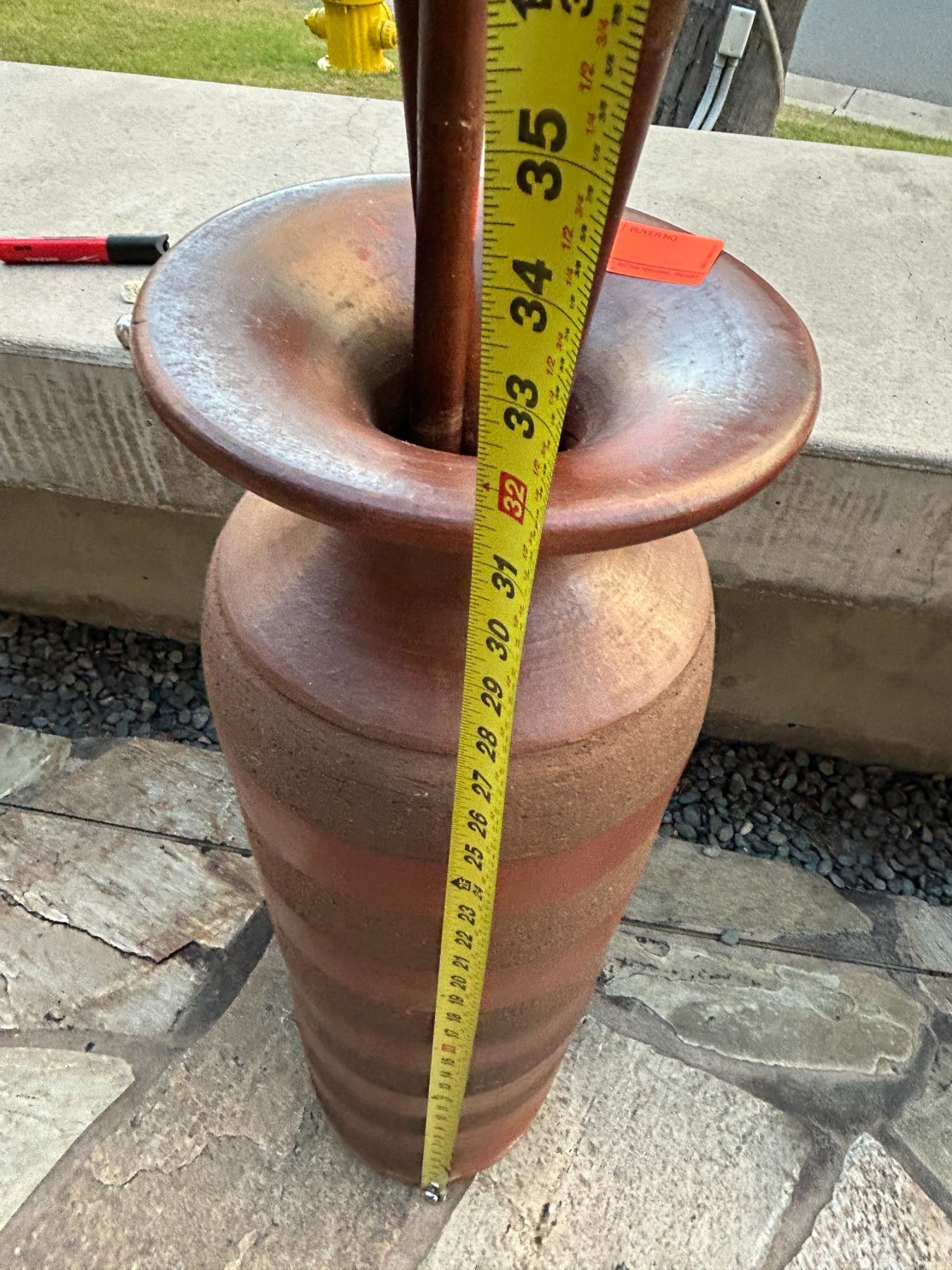 Tall Clay / Ceramic Vase w/ Artificial Leaves, Approx. 31" Tall