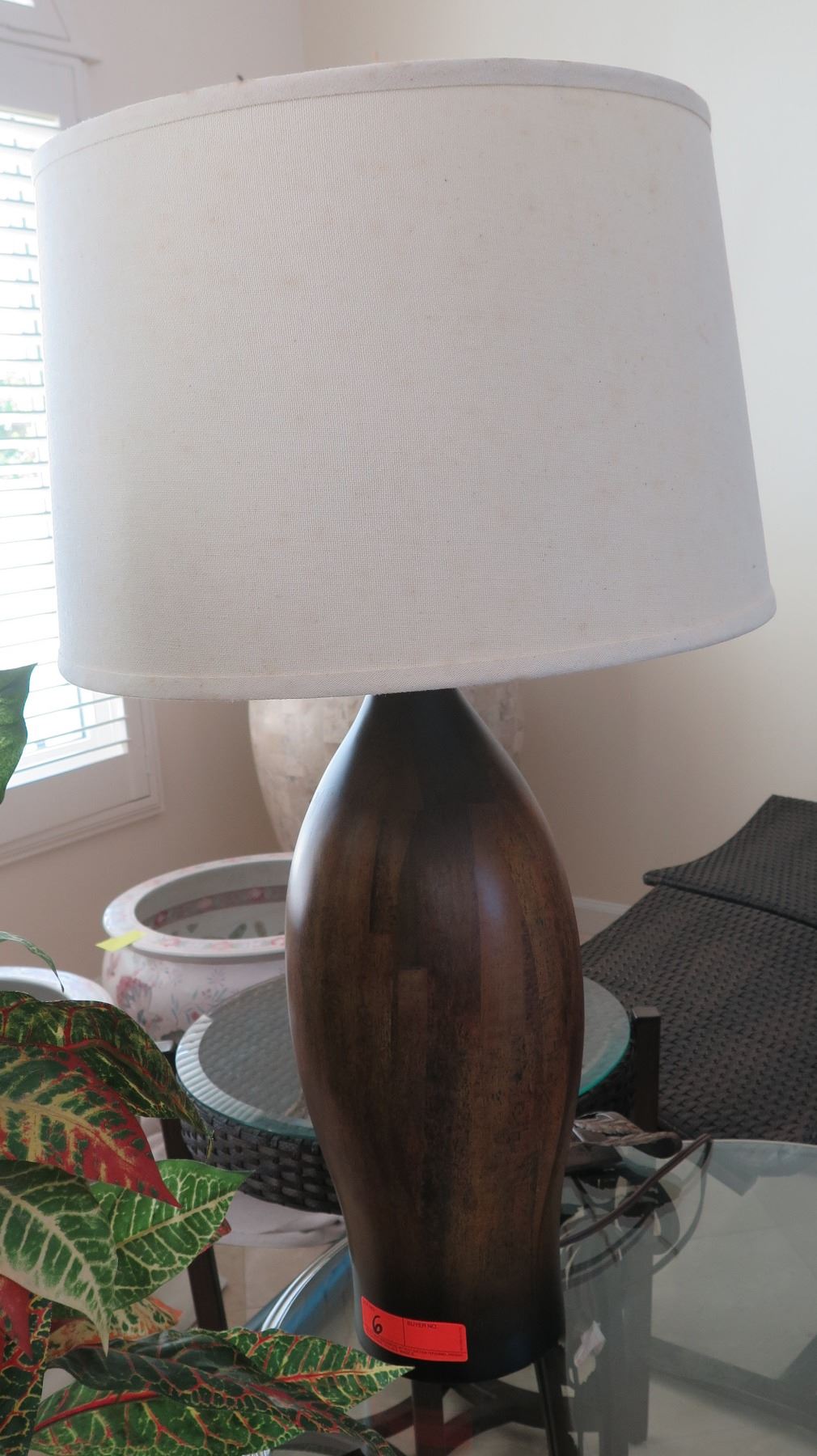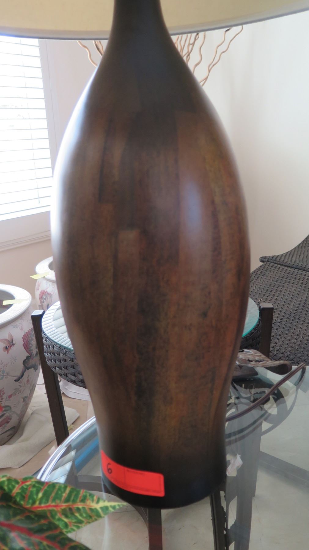 Tall Dark Wood Bowling Pin Lamp 31" H, Shade approx. 16.5" Dia.