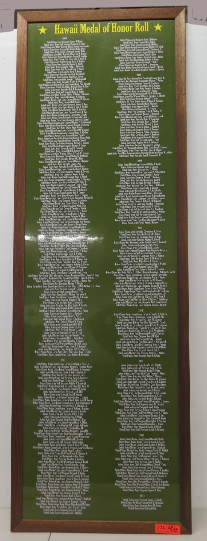 Tall Framed Hawaii Medal of Honor Roll Names 25" x 73"