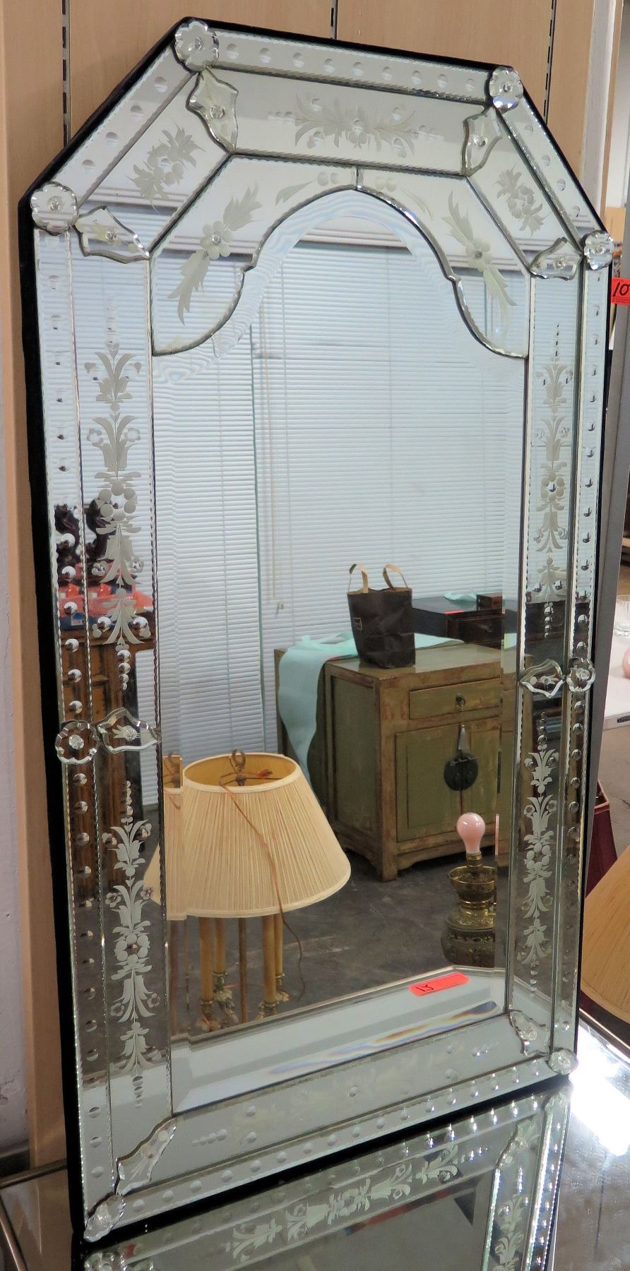 Tall Italian Wall Mirror w/ Etched Accents 24" x 43.5"
