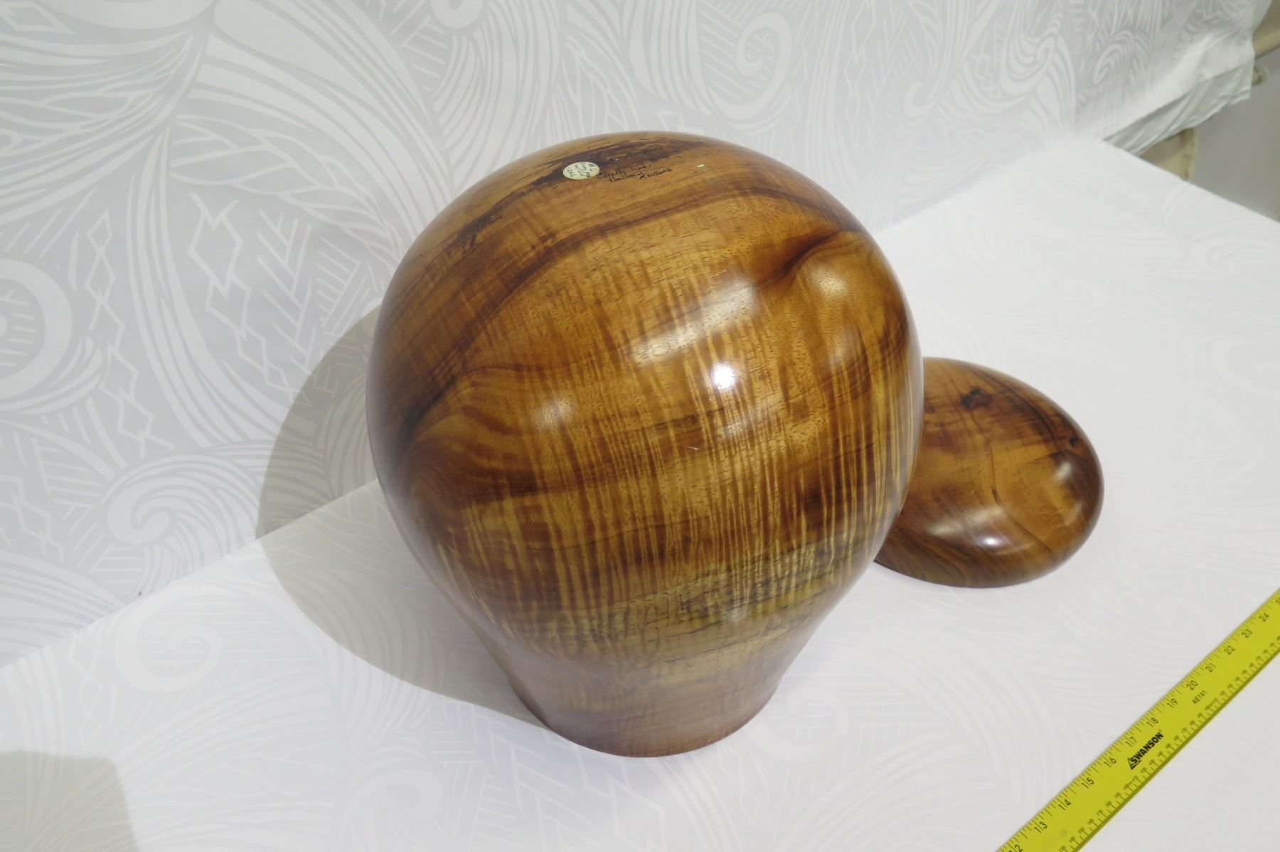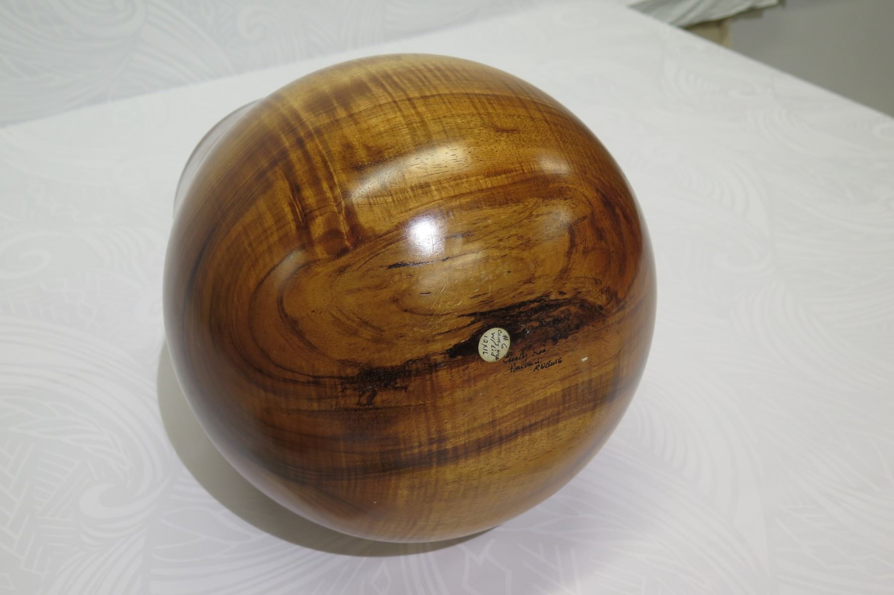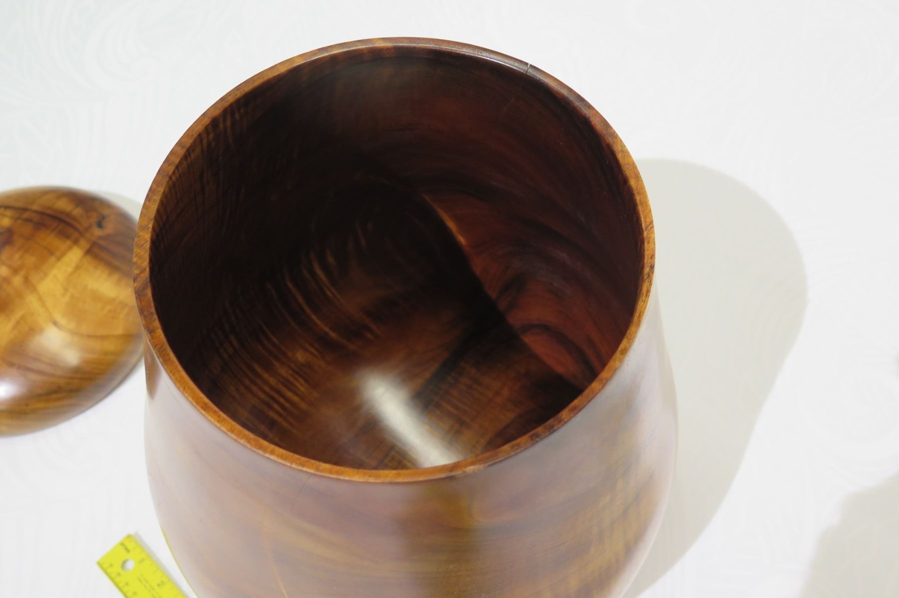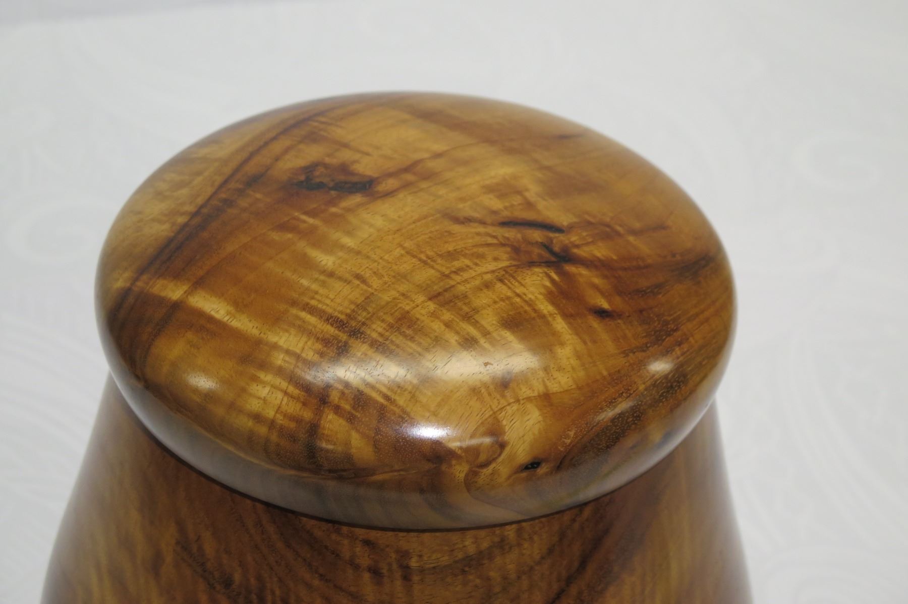 Tall Lidded Curly Koa Wood Bowl, Artist Robert W. Butts, Approx. 12" Dia, 14" Tall