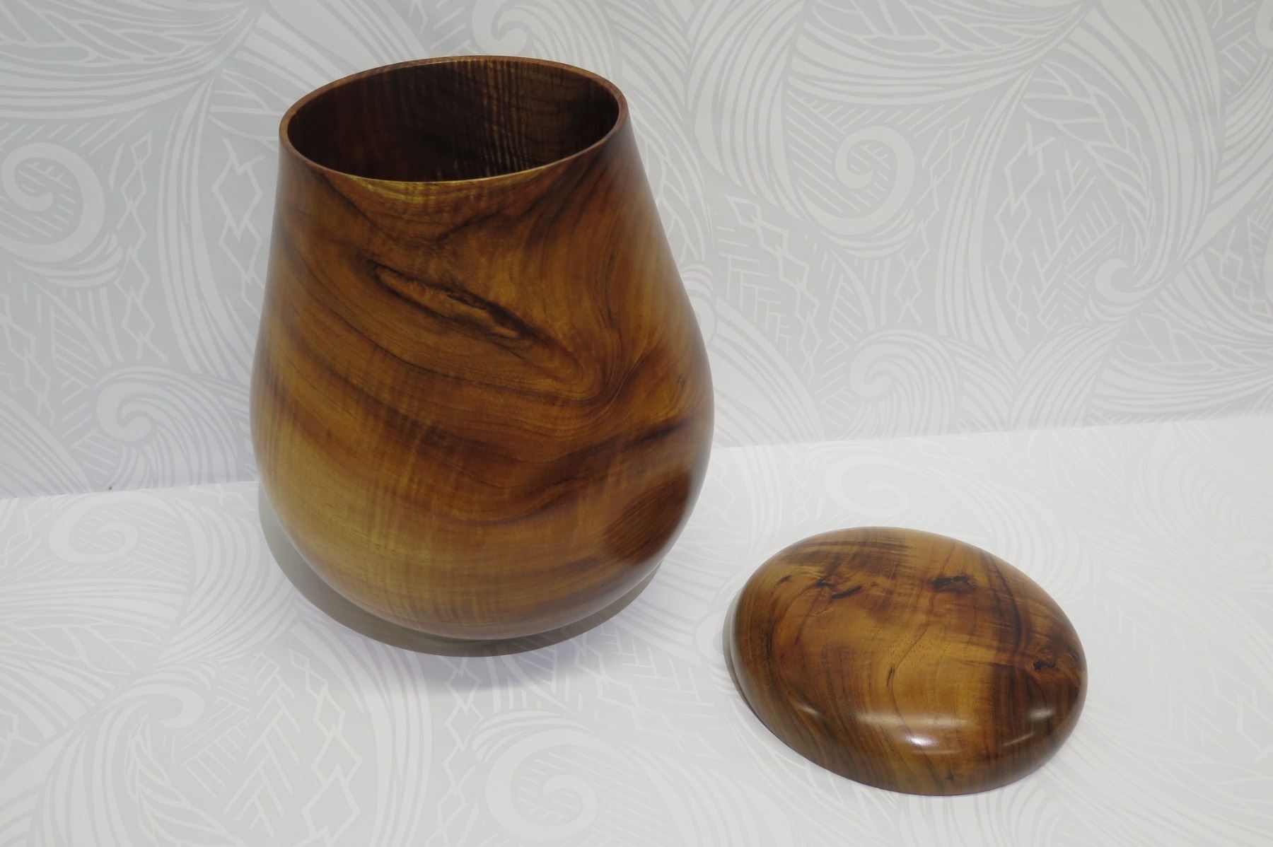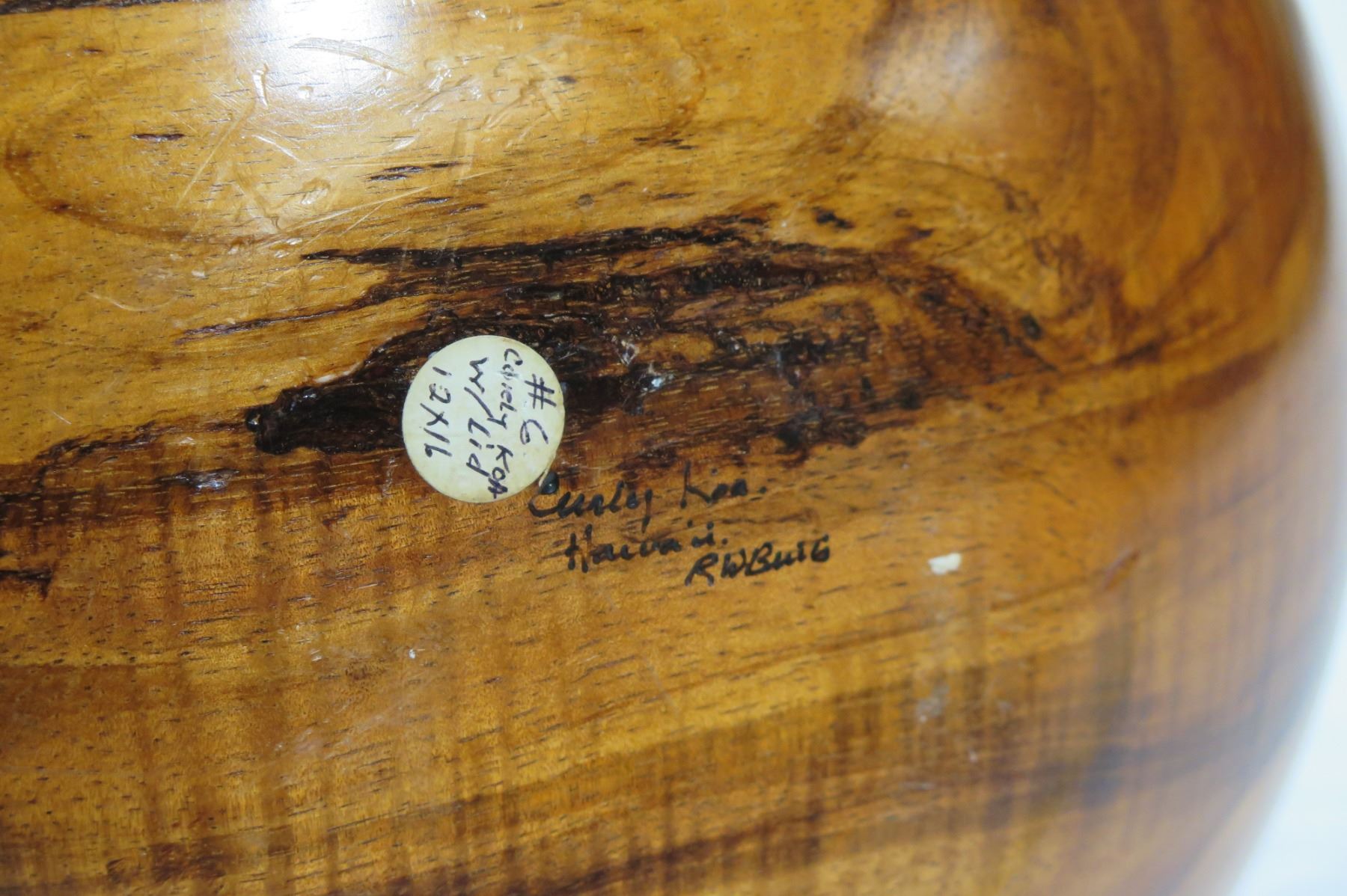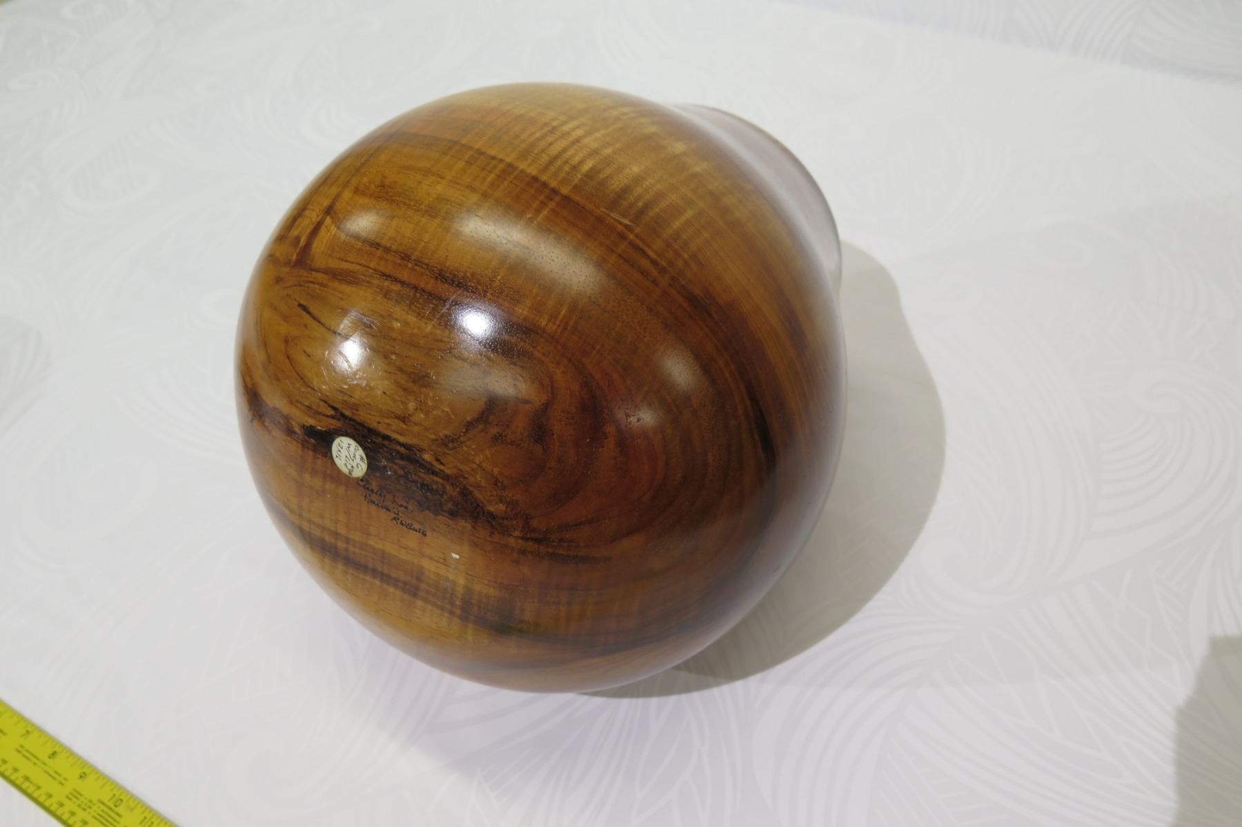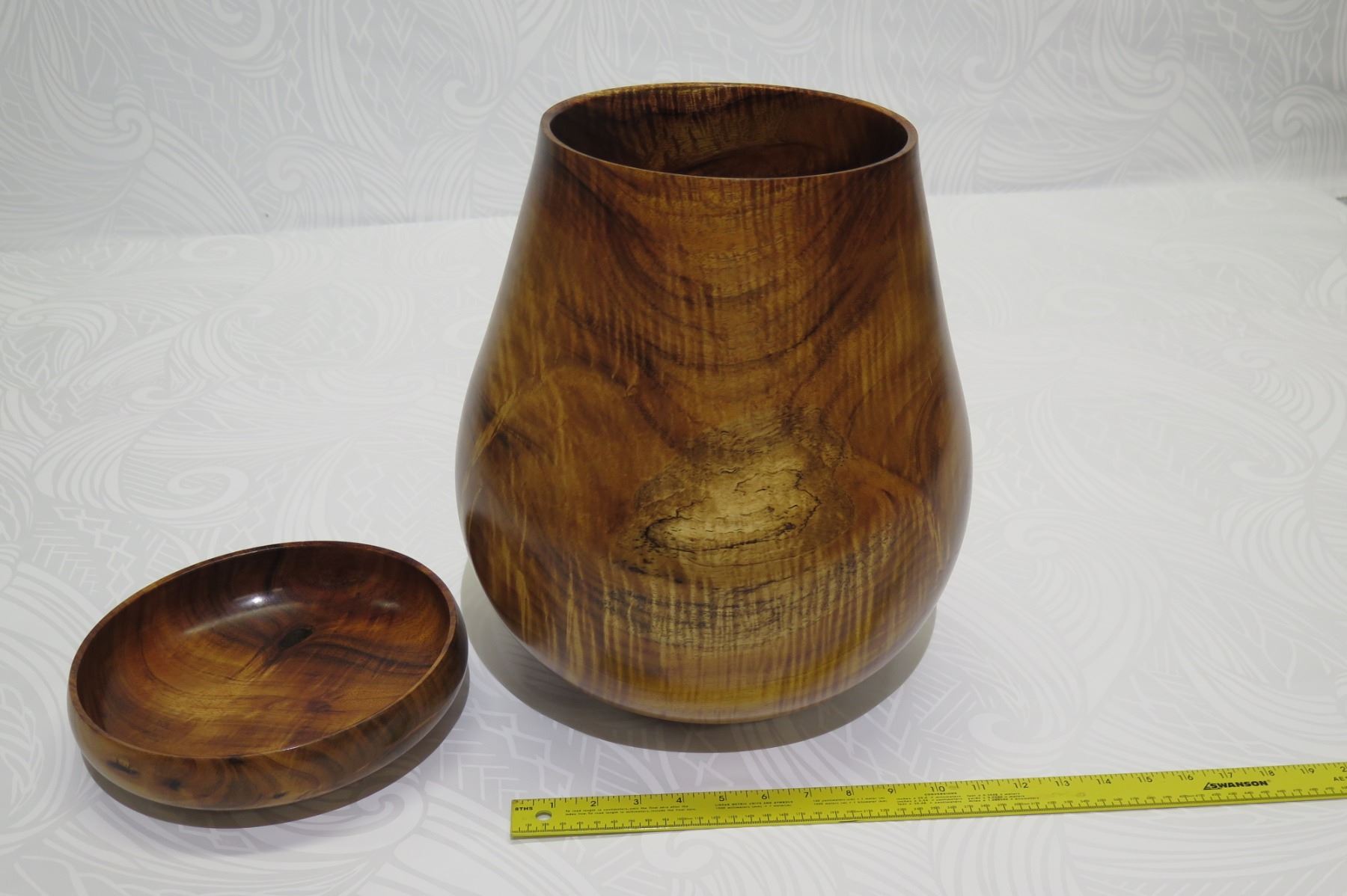 Tall Lidded Curly Koa Wood Bowl, Artist Robert W. Butts, Approx. 12" Dia, 14" Tall