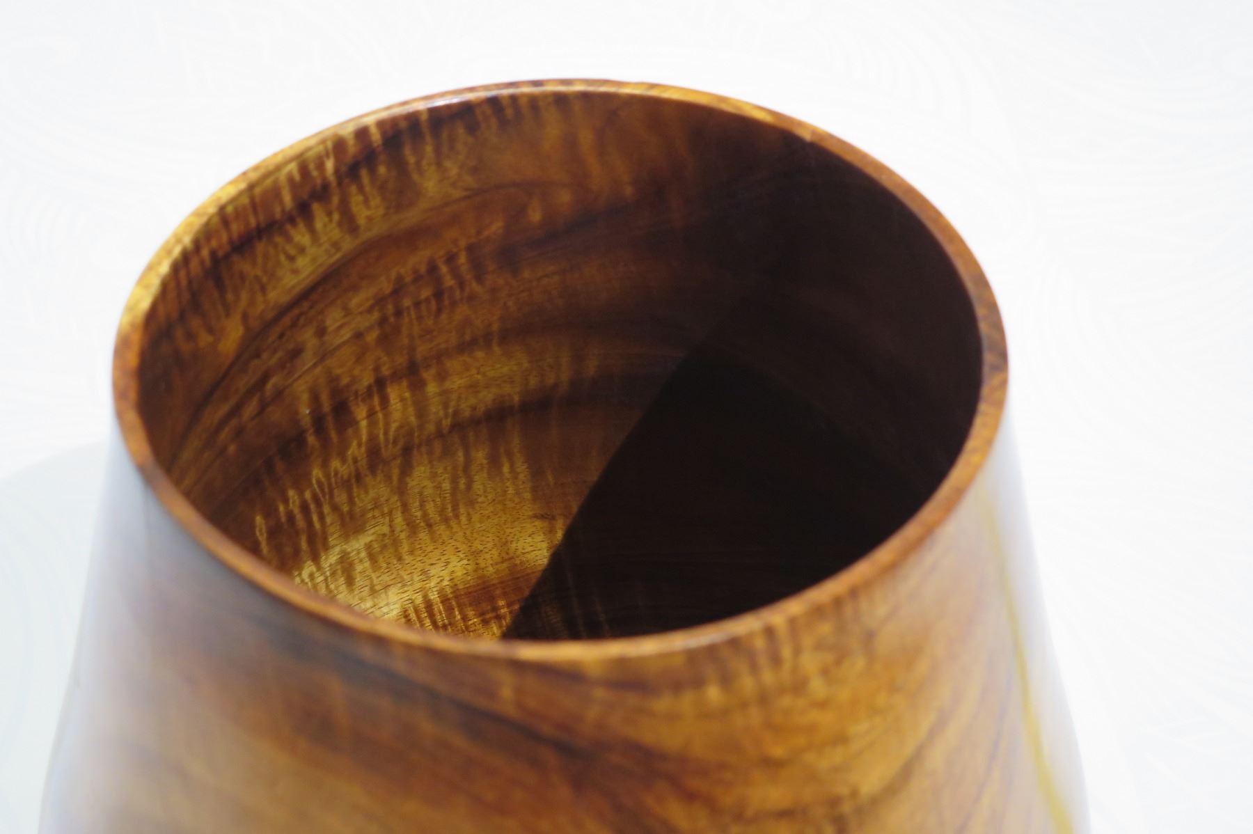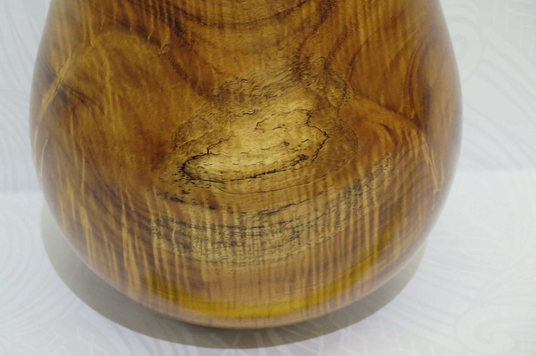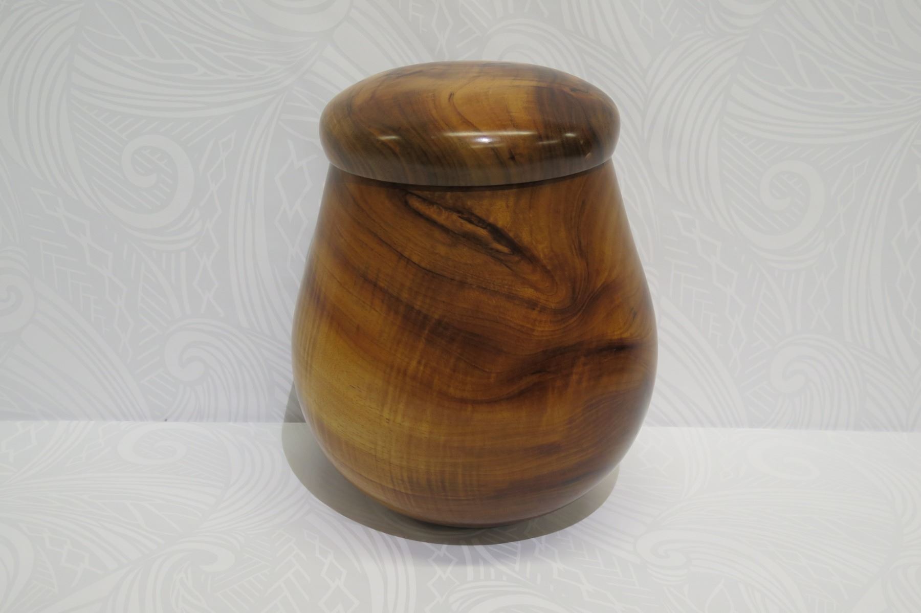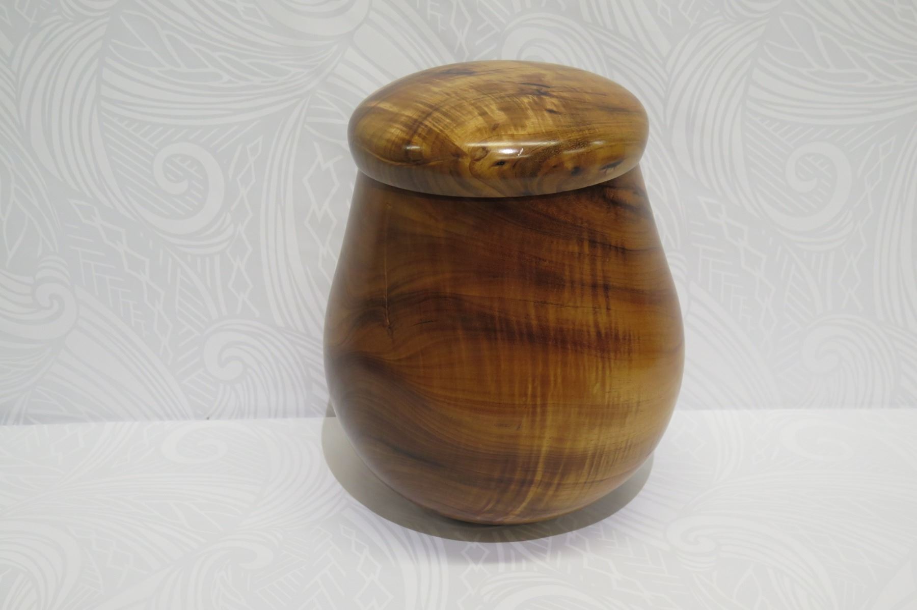 Tall Lidded Curly Koa Wood Bowl, Artist Robert W. Butts, Approx. 12" Dia, 14" Tall