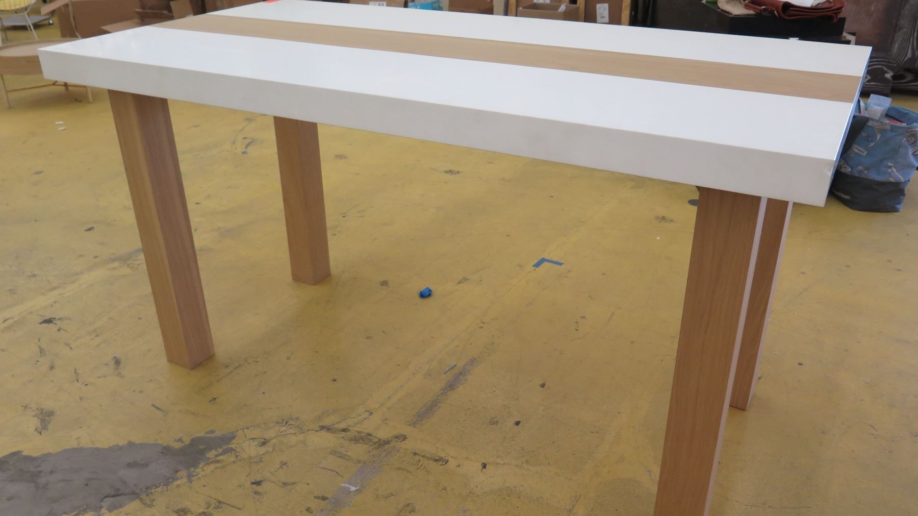 Tall Parsons Table - Natural Wood Legs, White Top, 6ft X 3ft, 38" Tall, minor damages on leg and la