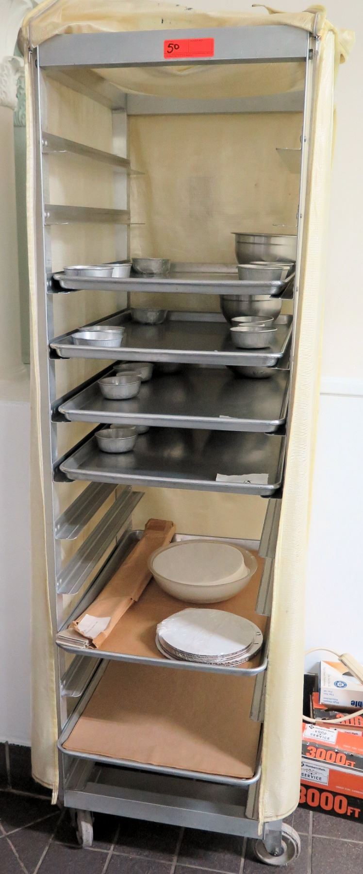 Tall Rolling Sheet Pan Mobile Pan Cooling Rack Shelf w/ 6 Pans & Misc 21"W x 25"D x 71"H