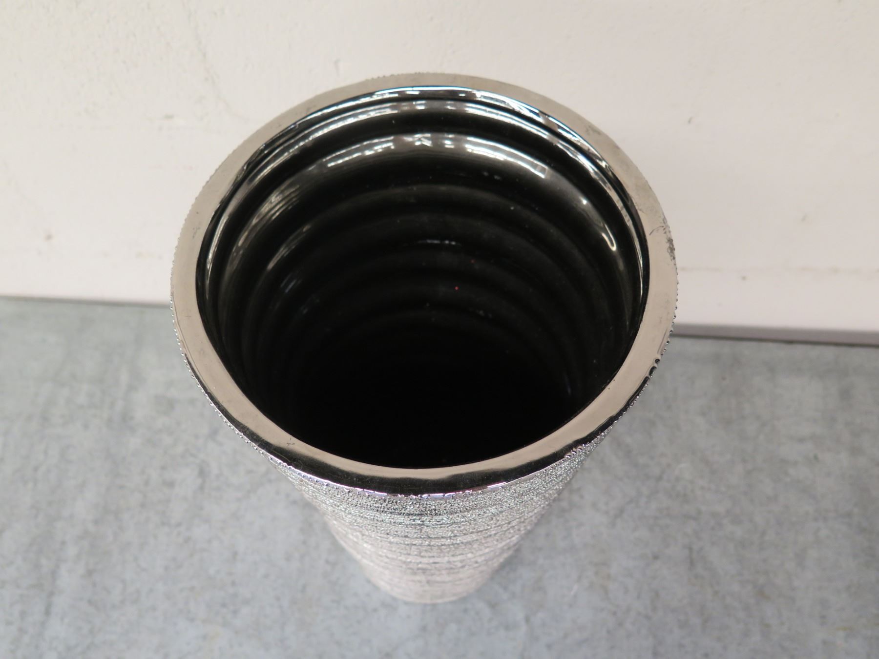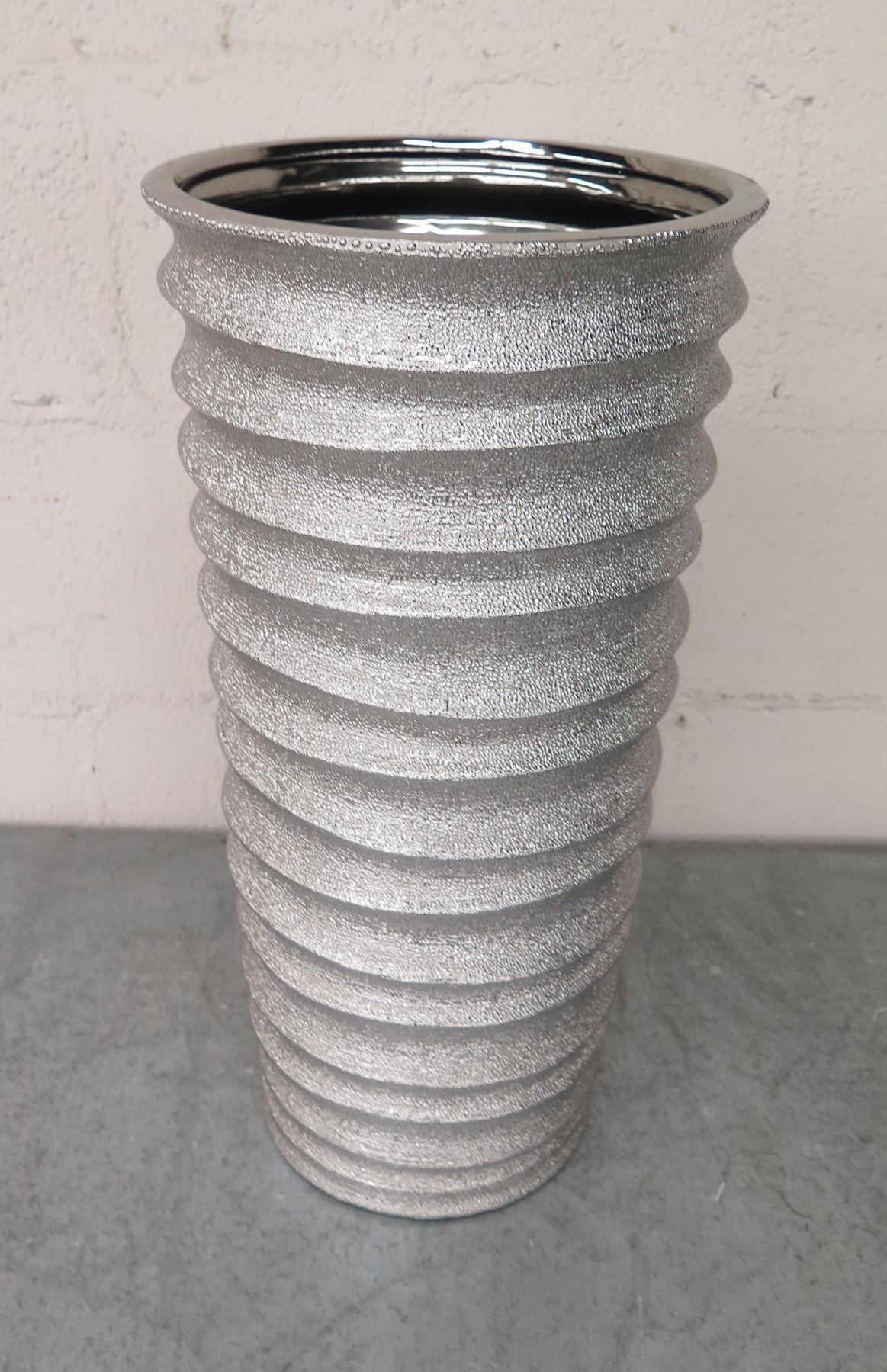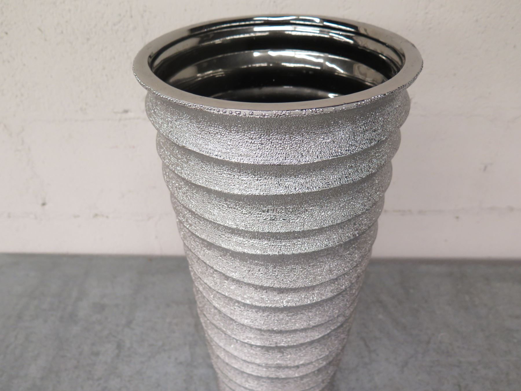 Tall UCI Textured Silver Colored Vase w/ Ribbed Design 9"Dia x 29" Tall