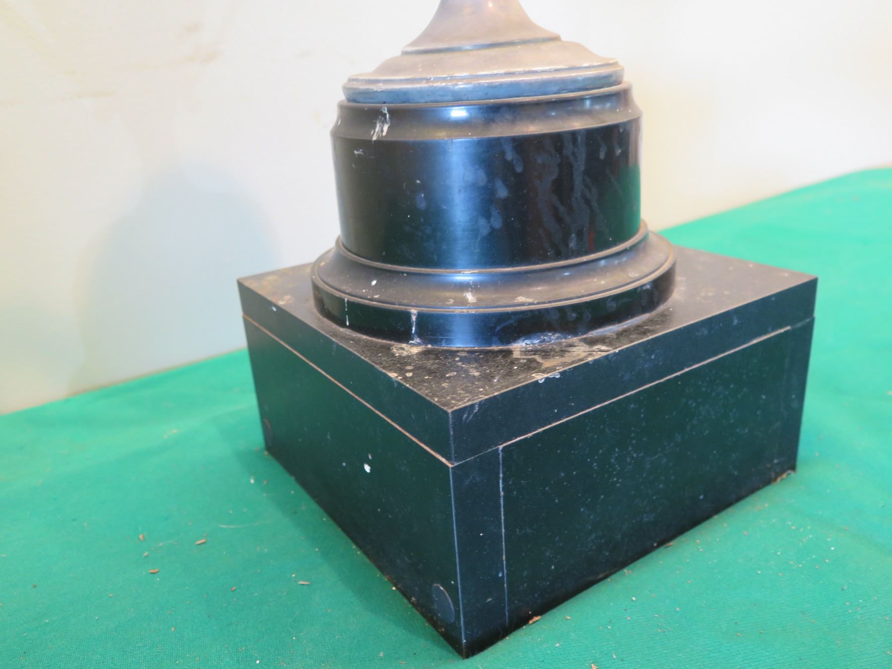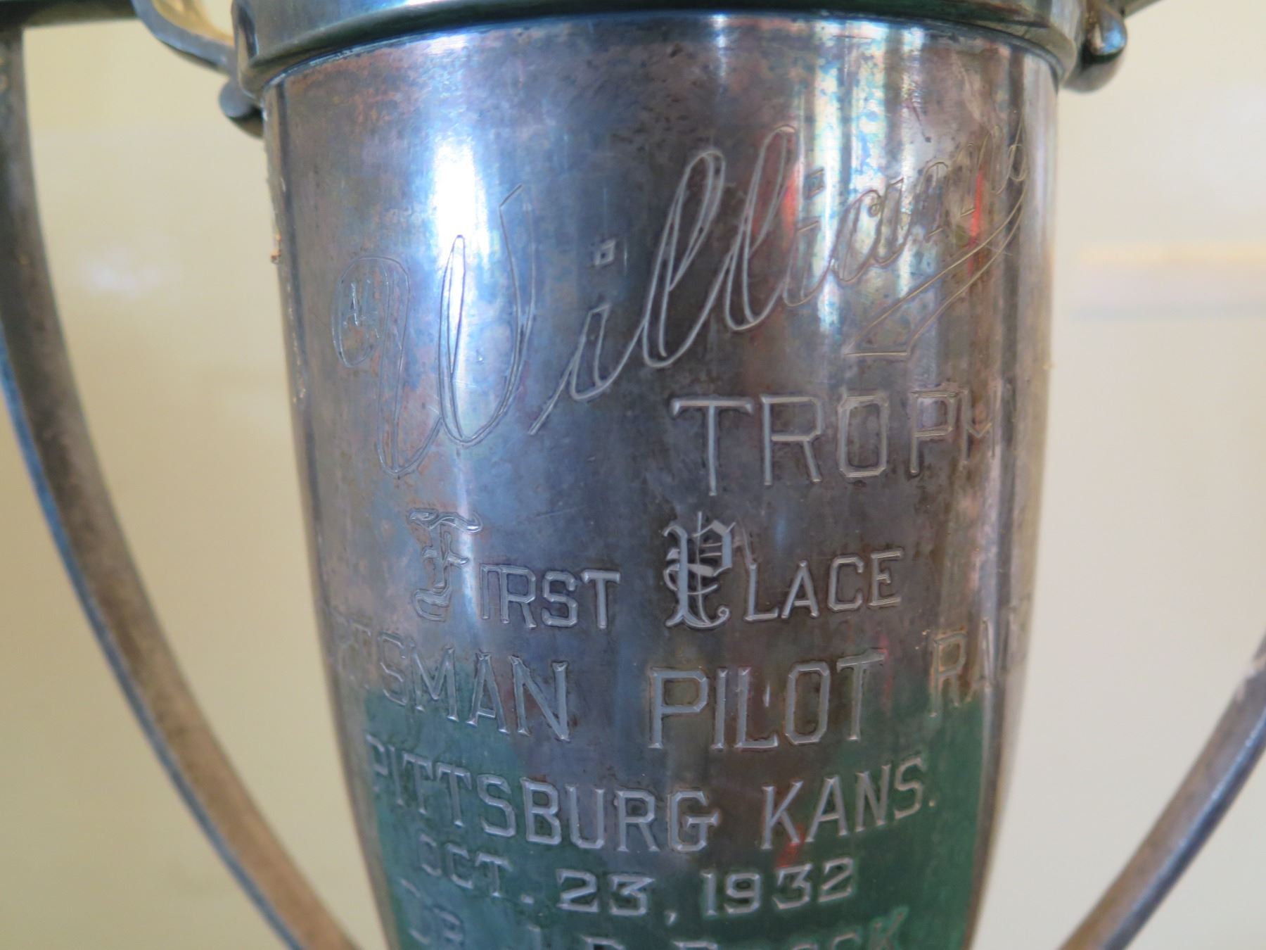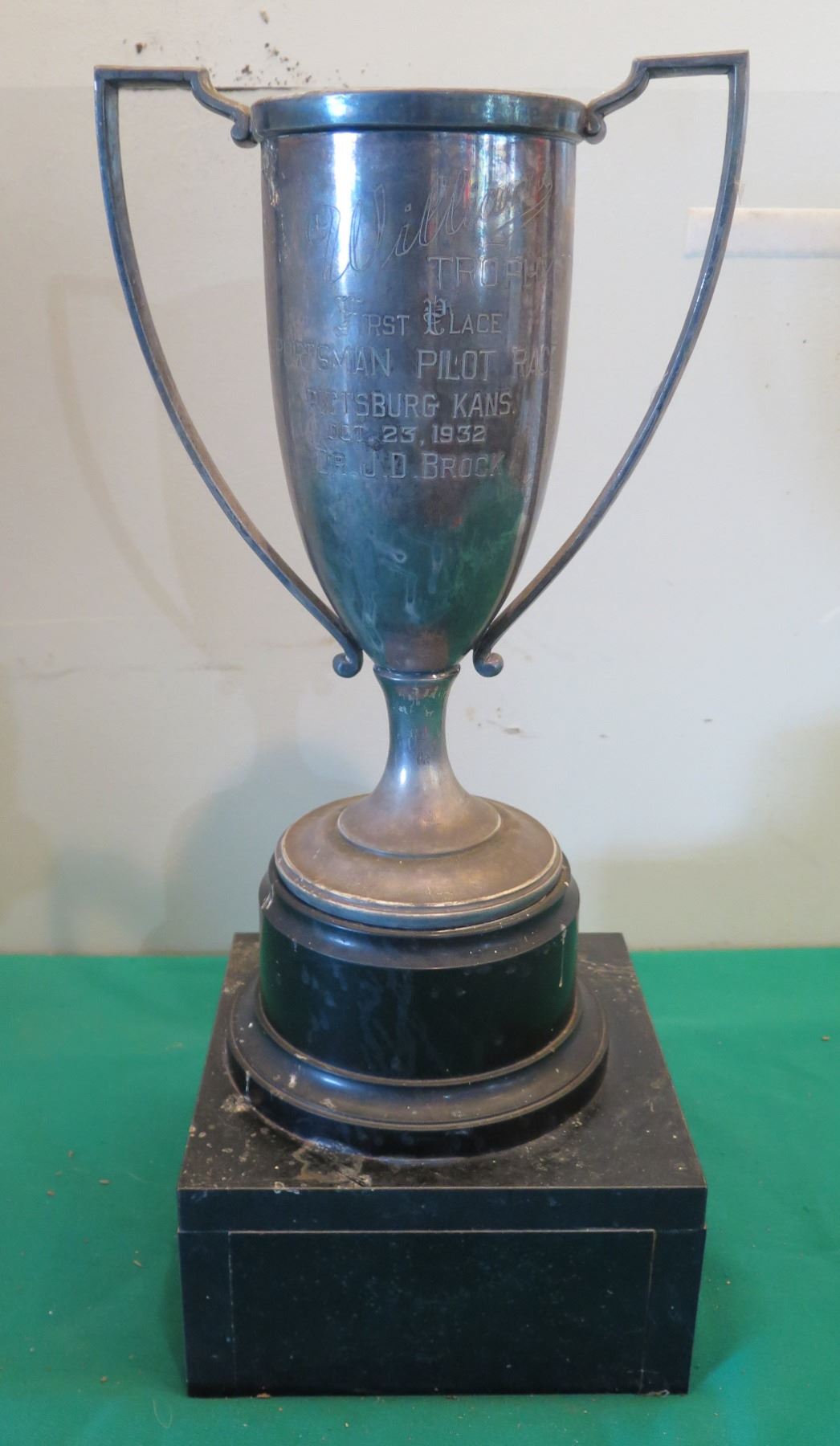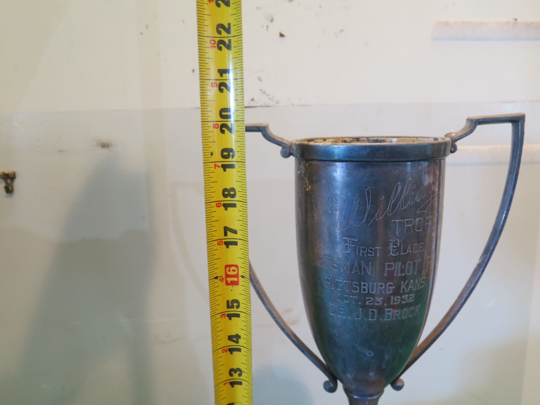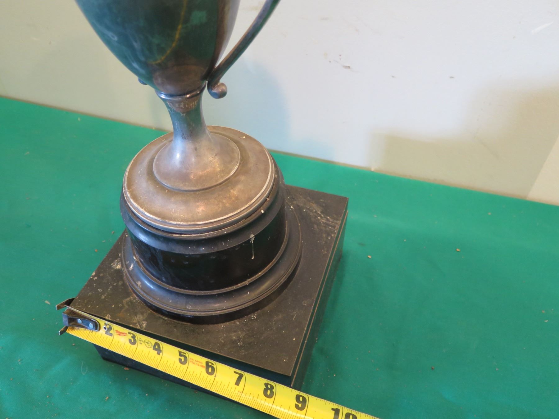 Tall Wood & Metal Cup Trophy w/ Handles First Place 1932, 20"H