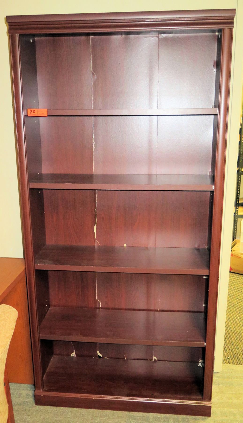 Tall Wooden Bookcase 35.5"W x 12.5"D x 73"H. Buyer will be responsible for disassembling and removing all purchased items in this auction. Buyer must bring own tools, carts, etc. Loadout Thursday, May 9 to Saturday May 11. Detailed directions to building’s loading zone and designated load-out areas will be provided.