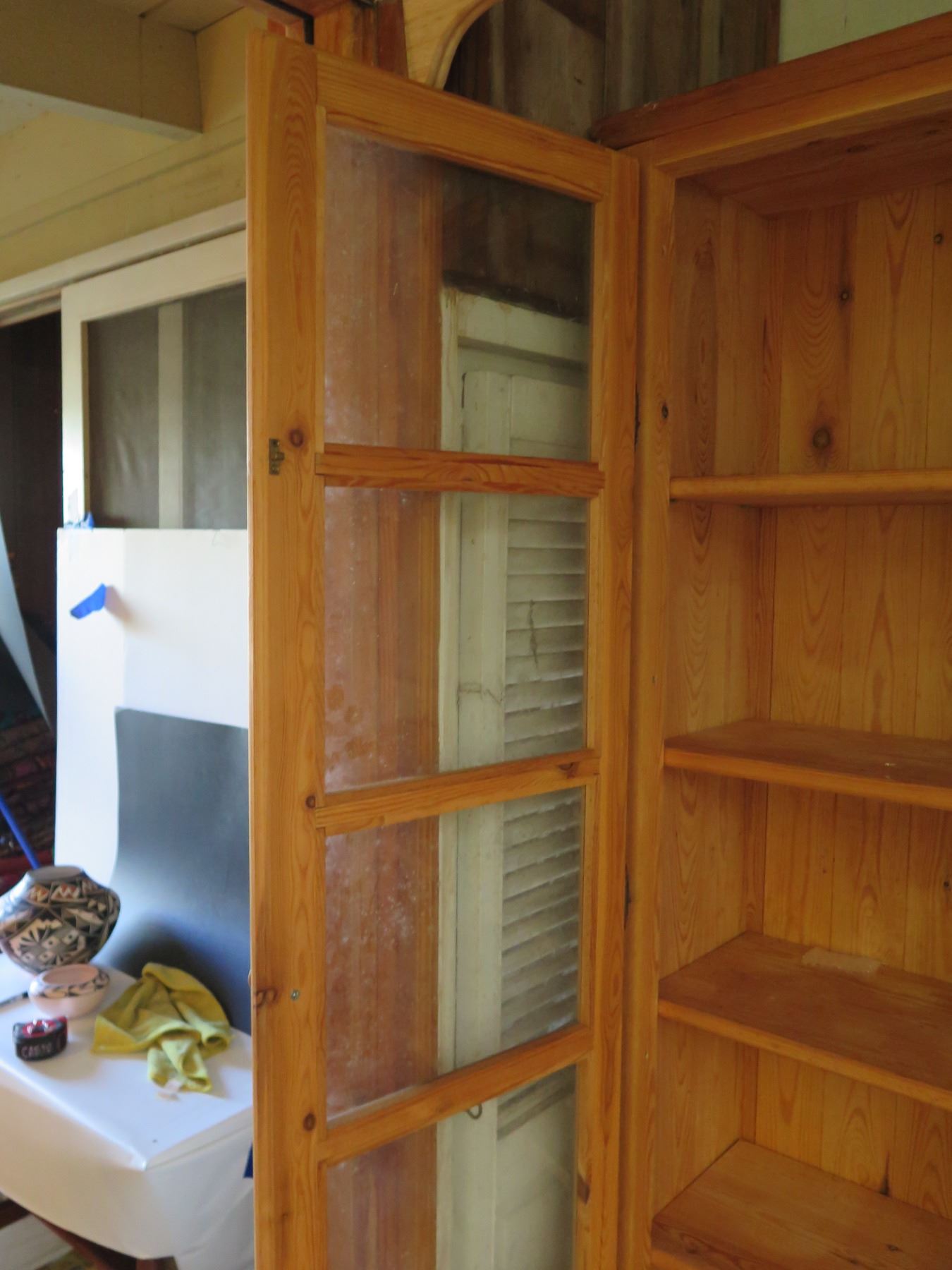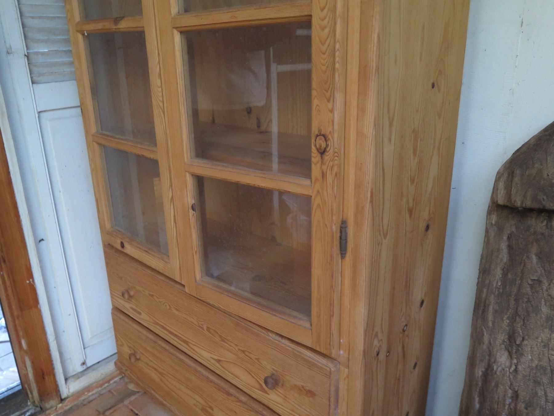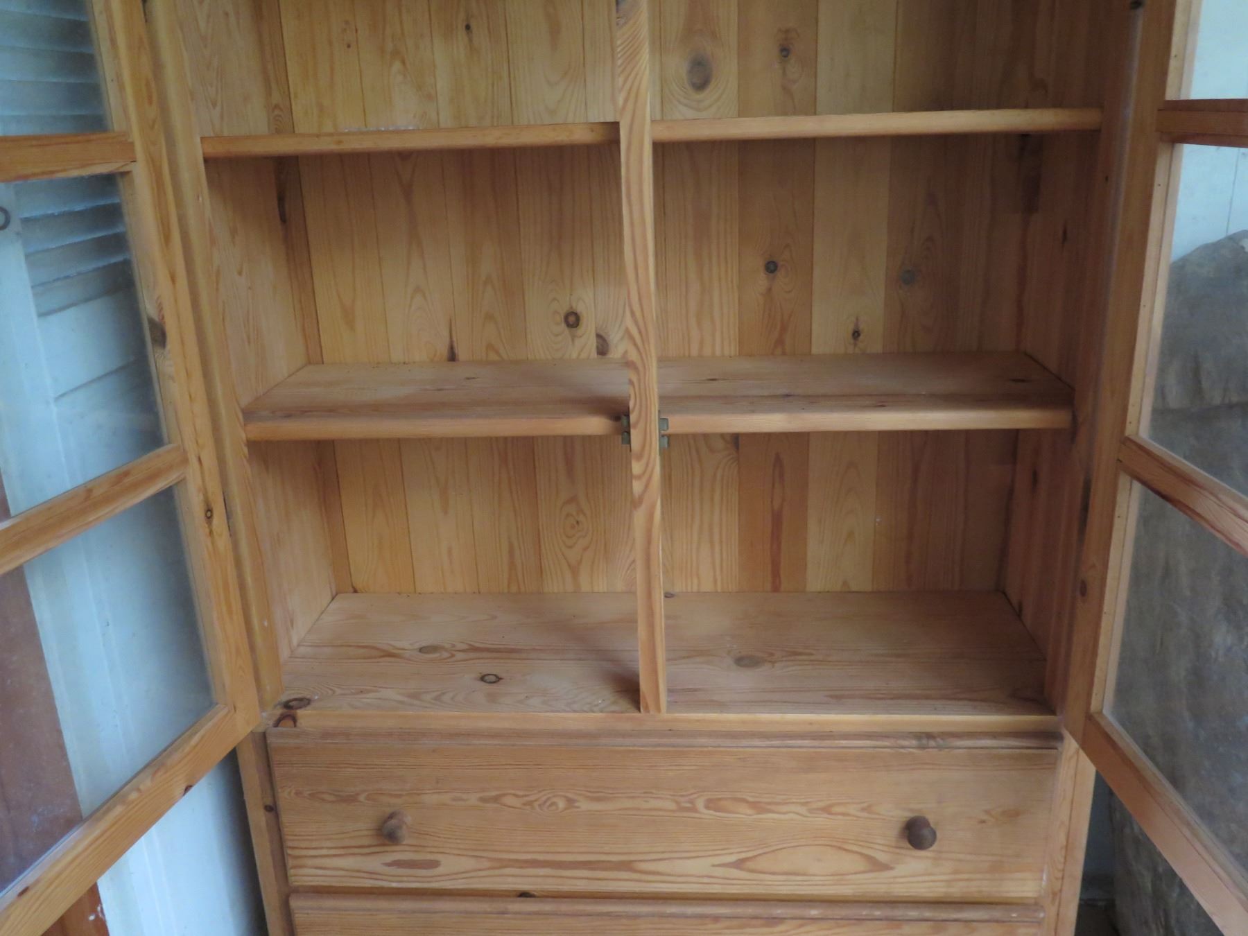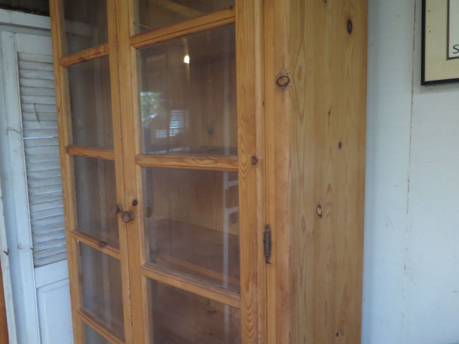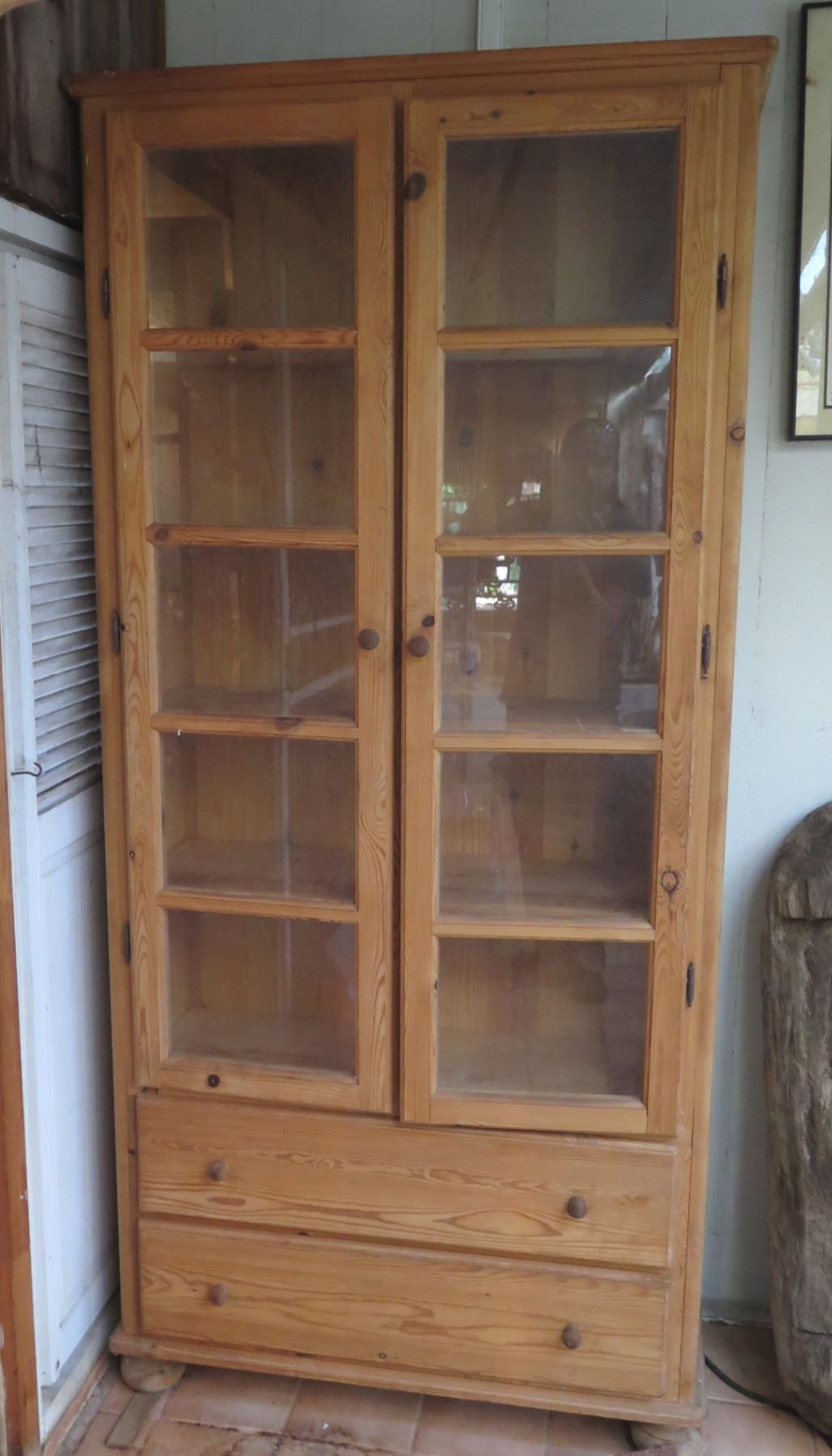 Tall Wooden Cabinet w/ Glass Doors, 5 Shelves 2 Drawers 36" x 13" x 79"