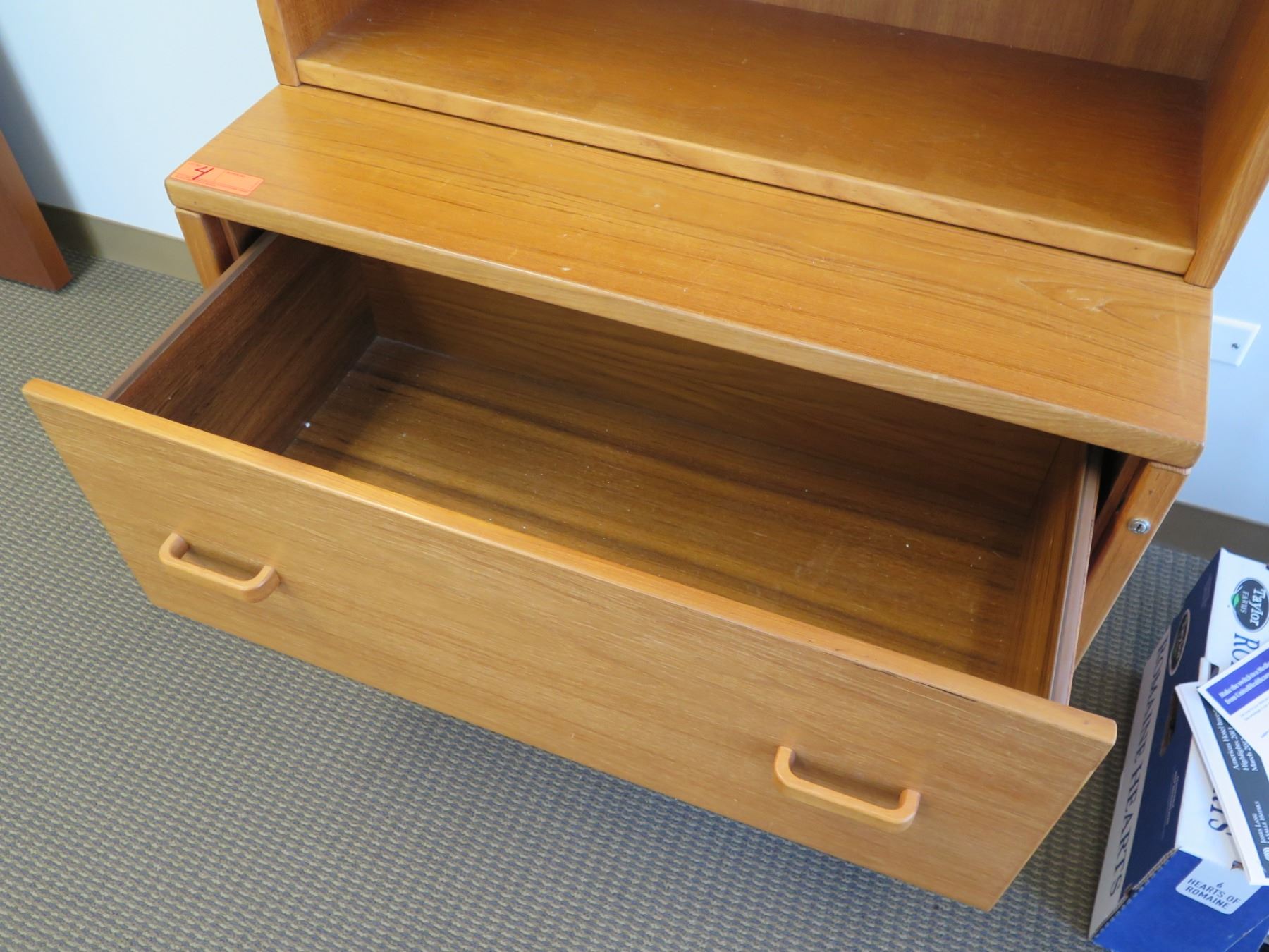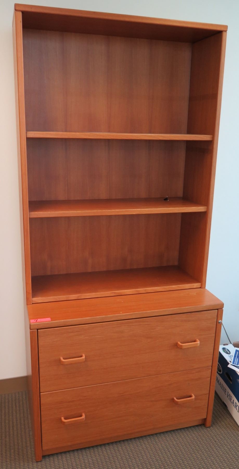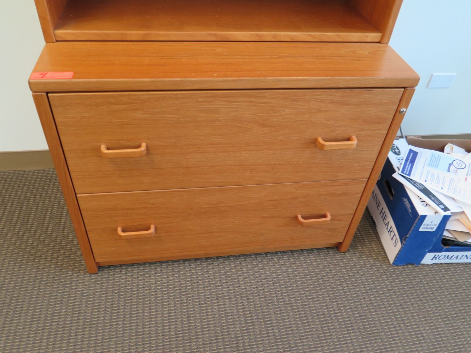 Tall Wooden Shelving Unit w/ 2 Drawer Cabinet
